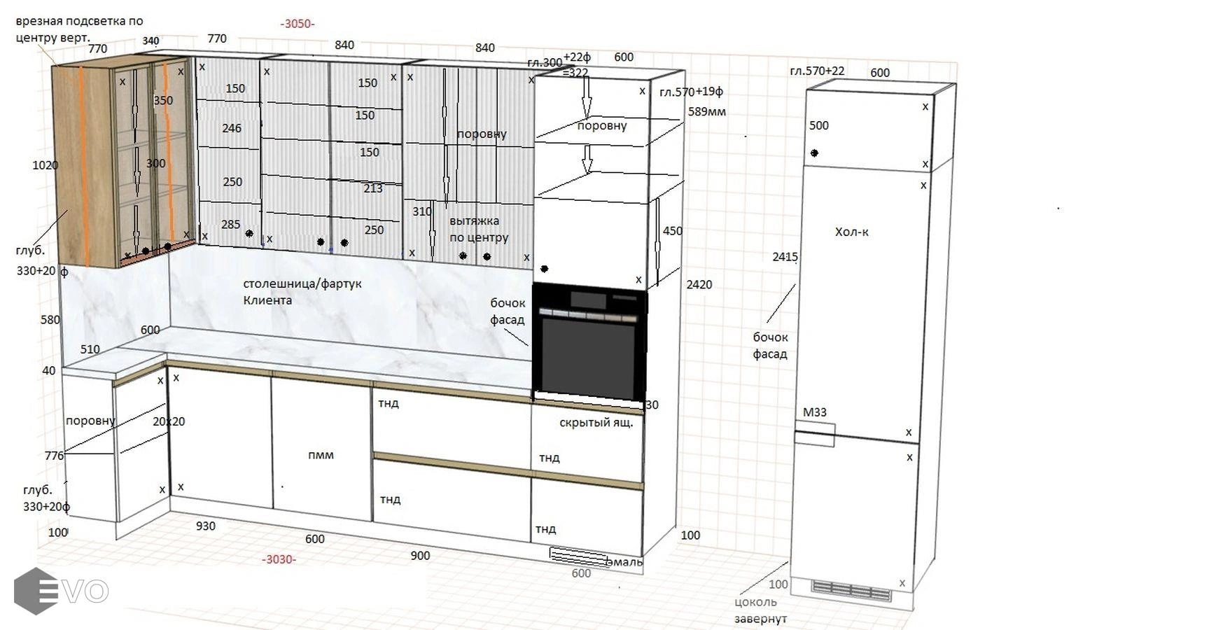 Дизайн-проект, максимально удовлетворяющий вашим пожеланиям, мы делаем бесплатно. Наши менеджеры-дизайнеры помогут вам определиться с моделью вашей будущей кухни, грамотно подберут встраиваемую технику, подберут цветовую гамму самой кухни исходя из стилистики интерьера и пожеланий клиента, составят технически грамотный проект под размеры помещения.