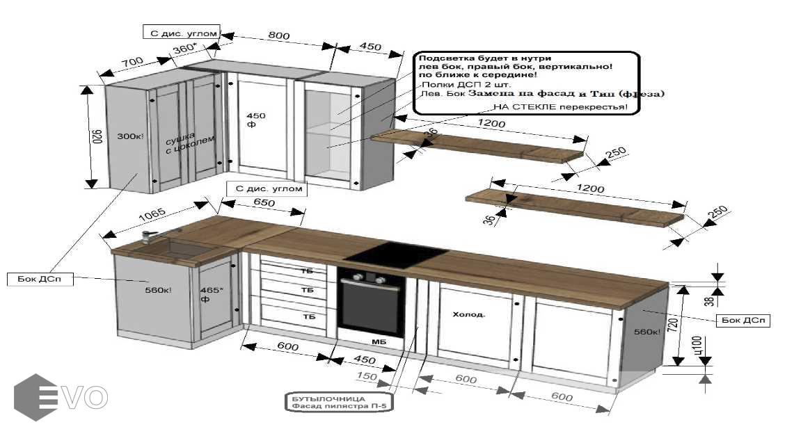 Кухни все изготавливаются по индивидуальному заказу. Мы подготовим дизайн-проект под любое помещение и конфигурацию. В зависимости от выбранных фасадов сможем изготовить нестандартные модули и размеры. Однако есть редкие исключения видов фасадов, по которым невозможны нестандарты, об этом вас предупредит дизайнер при выборе материалов для проекта.