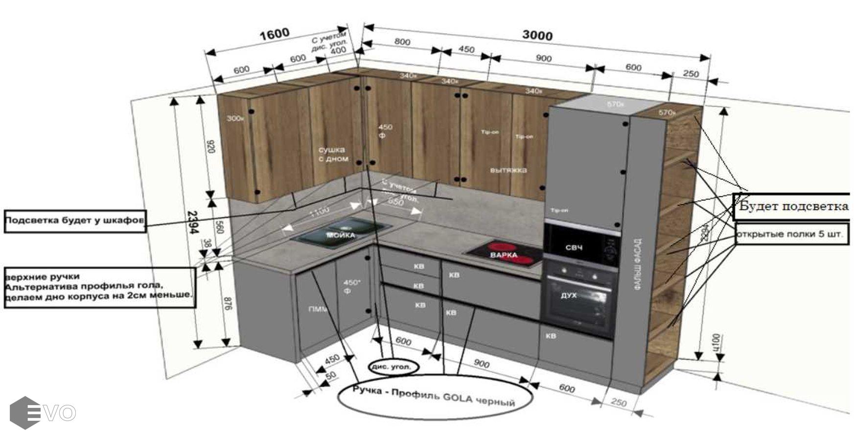 Кухни все изготавливаются по индивидуальному заказу. Мы подготовим дизайн-проект под любое помещение и конфигурацию. В зависимости от выбранных фасадов сможем изготовить нестандартные модули и размеры. Однако есть редкие исключения видов фасадов, по которым невозможны нестандарты, об этом вас предупредит дизайнер при выборе материалов для проекта.