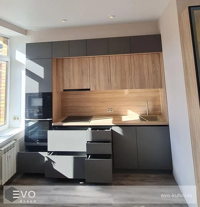 Кухни все изготавливаются по индивидуальному заказу. Мы подготовим дизайн-проект под любое помещение и конфигурацию. В зависимости от выбранных фасадов сможем изготовить нестандартные модули и размеры. Однако есть редкие исключения видов фасадов, по которым невозможны нестандарты, об этом вас предупредит дизайнер при выборе материалов для проекта.