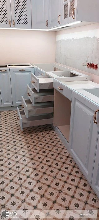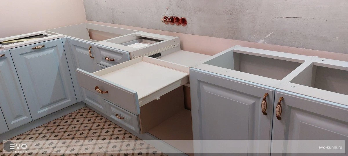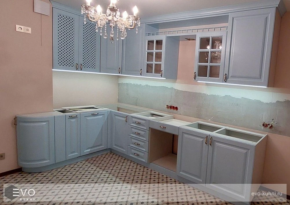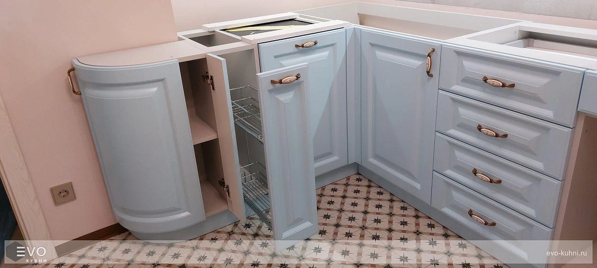 Кухни все изготавливаются по индивидуальному заказу. Мы подготовим дизайн-проект под любое помещение и конфигурацию. В зависимости от выбранных фасадов сможем изготовить нестандартные модули и размеры. Однако есть редкие исключения видов фасадов, по которым невозможны нестандарты, об этом вас предупредит дизайнер при выборе материалов для проекта.