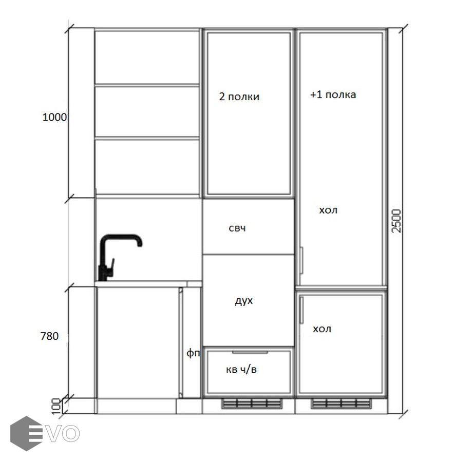 Кухни все изготавливаются по индивидуальному заказу. Мы подготовим дизайн-проект под любое помещение и конфигурацию. В зависимости от выбранных фасадов сможем изготовить нестандартные модули и размеры. Однако есть редкие исключения видов фасадов, по которым невозможны нестандарты, об этом вас предупредит дизайнер при выборе материалов для проекта.