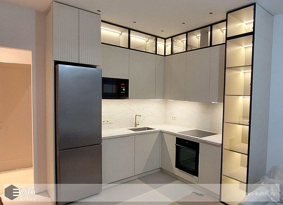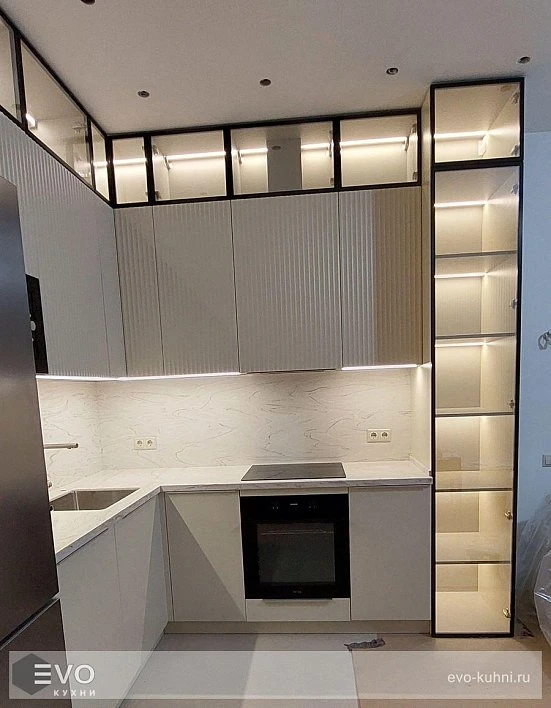 Кухни все изготавливаются по индивидуальному заказу. Мы подготовим дизайн-проект под любое помещение и конфигурацию. В зависимости от выбранных фасадов сможем изготовить нестандартные модули и размеры. Однако есть редкие исключения видов фасадов, по которым невозможны нестандарты, об этом вас предупредит дизайнер при выборе материалов для проекта.