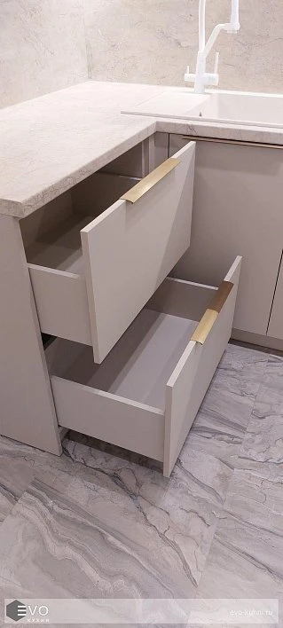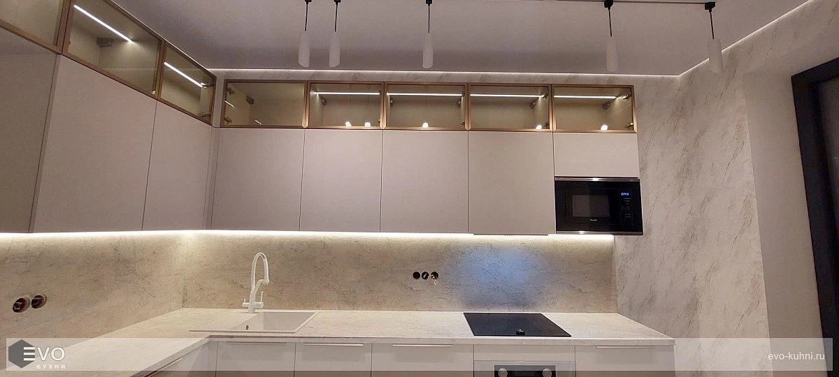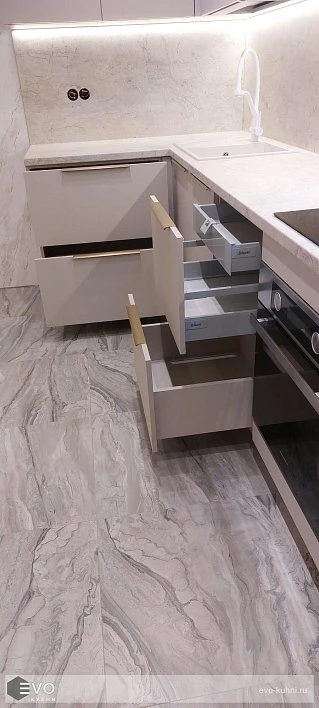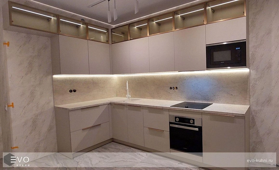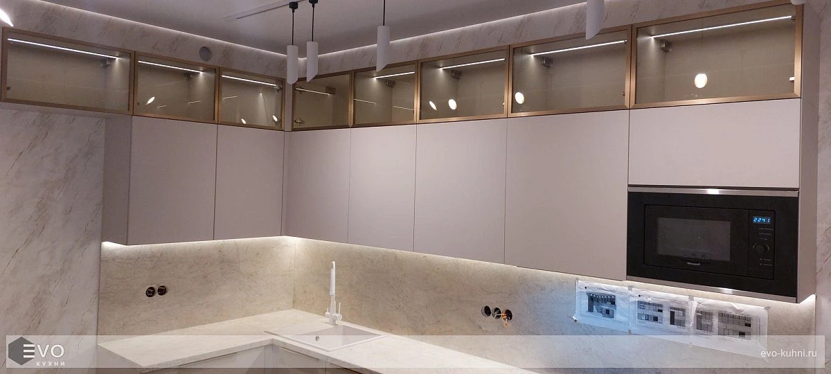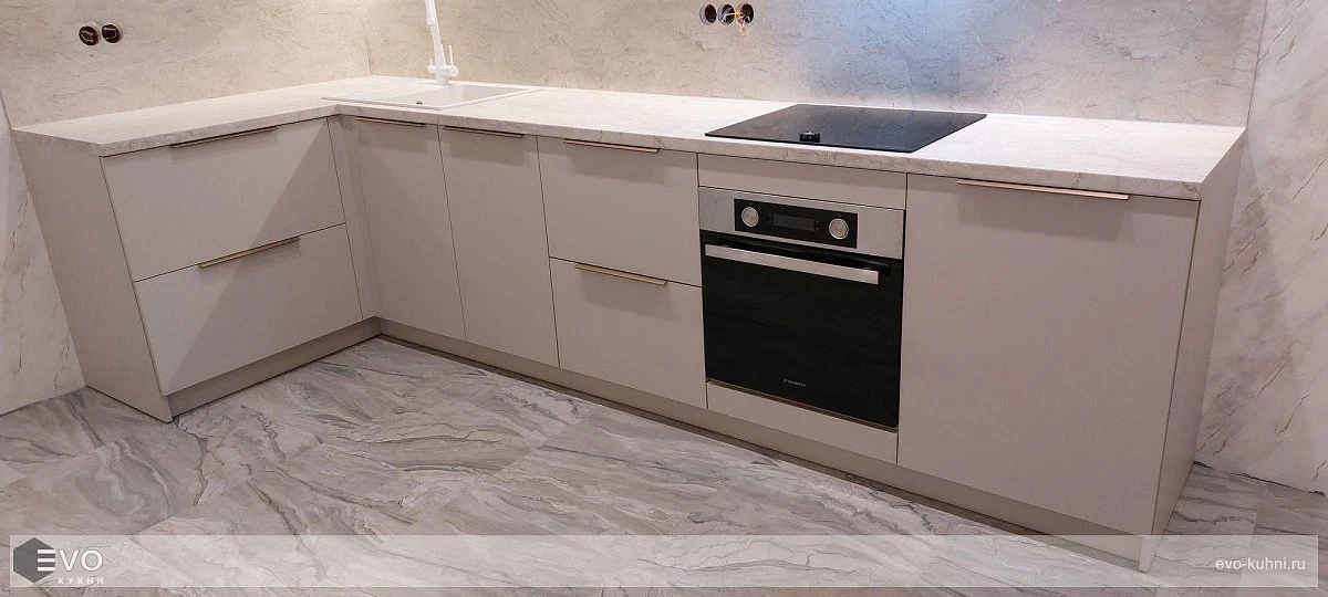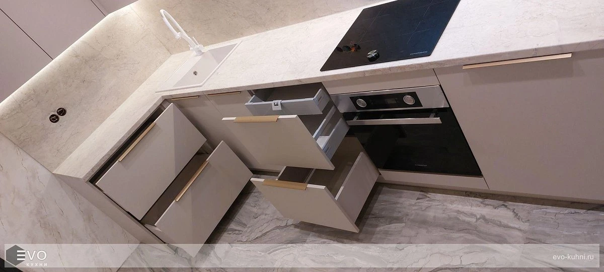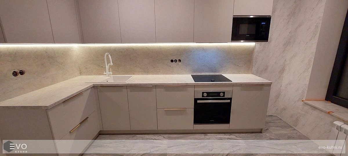 Кухни все изготавливаются по индивидуальному заказу. Мы подготовим дизайн-проект под любое помещение и конфигурацию. В зависимости от выбранных фасадов сможем изготовить нестандартные модули и размеры. Однако есть редкие исключения видов фасадов, по которым невозможны нестандарты, об этом вас предупредит дизайнер при выборе материалов для проекта.