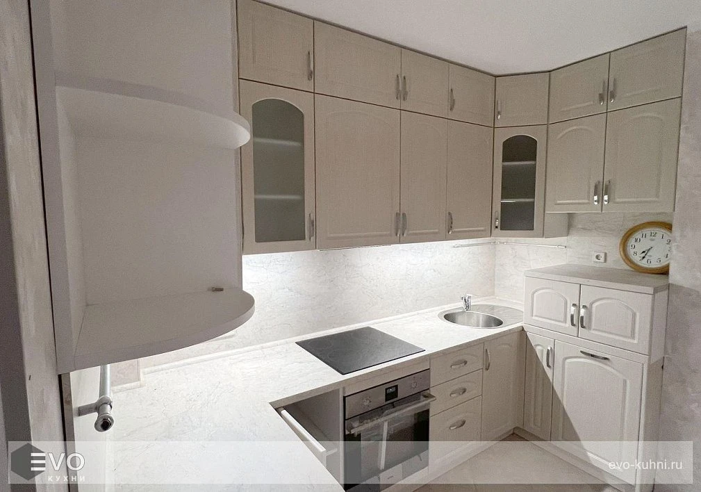 Кухни все изготавливаются по индивидуальному заказу. Мы подготовим дизайн-проект под любое помещение и конфигурацию. В зависимости от выбранных фасадов сможем изготовить нестандартные модули и размеры. Однако есть редкие исключения видов фасадов, по которым невозможны нестандарты, об этом вас предупредит дизайнер при выборе материалов для проекта.