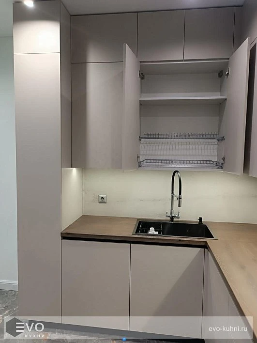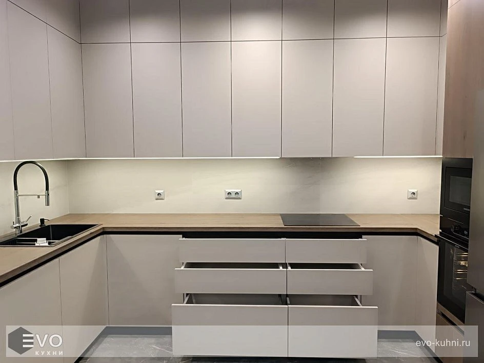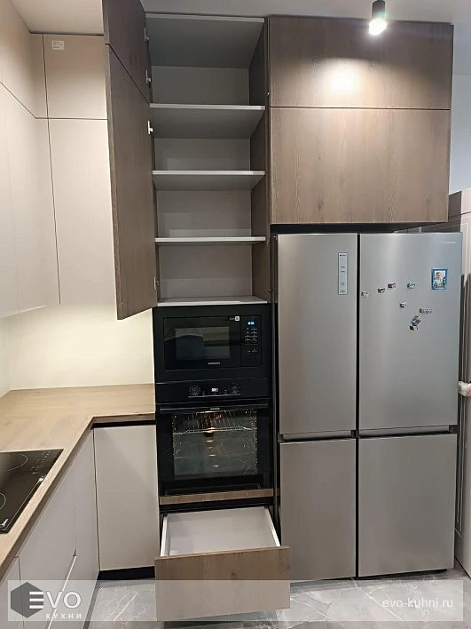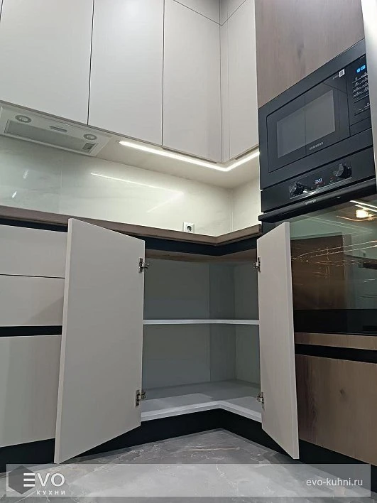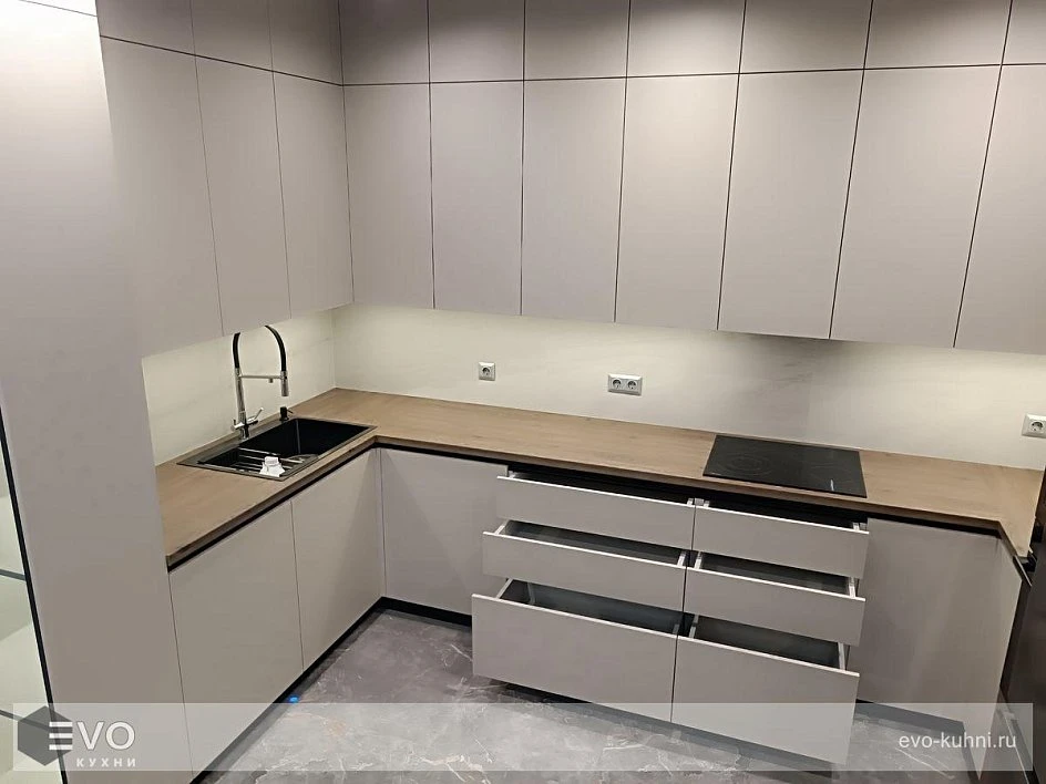 Кухни все изготавливаются по индивидуальному заказу. Мы подготовим дизайн-проект под любое помещение и конфигурацию. В зависимости от выбранных фасадов сможем изготовить нестандартные модули и размеры. Однако есть редкие исключения видов фасадов, по которым невозможны нестандарты, об этом вас предупредит дизайнер при выборе материалов для проекта.
