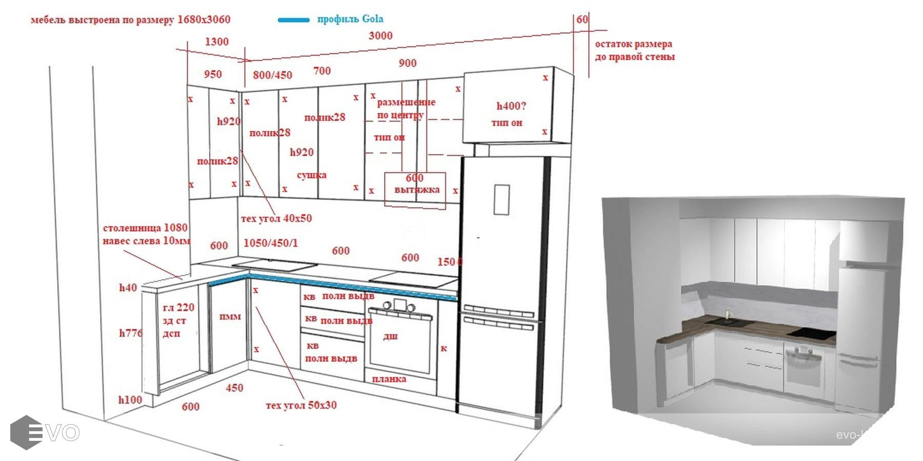 Кухни все изготавливаются по индивидуальному заказу. Мы подготовим дизайн-проект под любое помещение и конфигурацию. В зависимости от выбранных фасадов сможем изготовить нестандартные модули и размеры. Однако есть редкие исключения видов фасадов, по которым невозможны нестандарты, об этом вас предупредит дизайнер при выборе материалов для проекта.