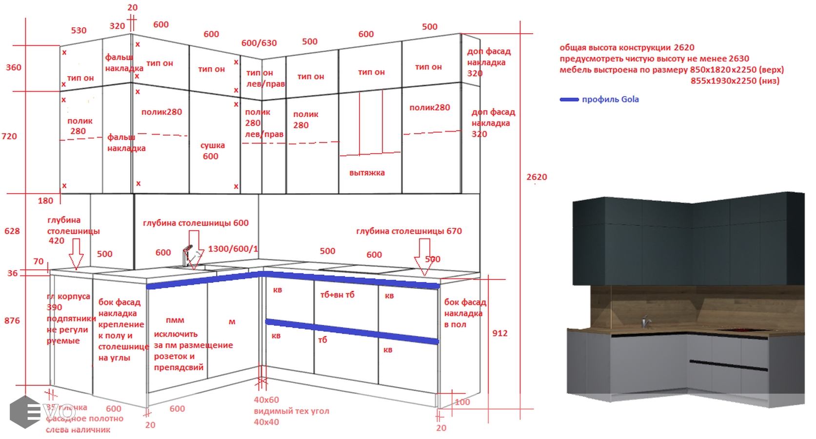 Дизайн-проект, максимально удовлетворяющий вашим пожеланиям, мы делаем бесплатно. Наши менеджеры-дизайнеры помогут вам определиться с моделью вашей будущей кухни, грамотно подберут встраиваемую технику, подберут цветовую гамму самой кухни исходя из стилистики интерьера и пожеланий клиента, составят технически грамотный проект под размеры помещения.