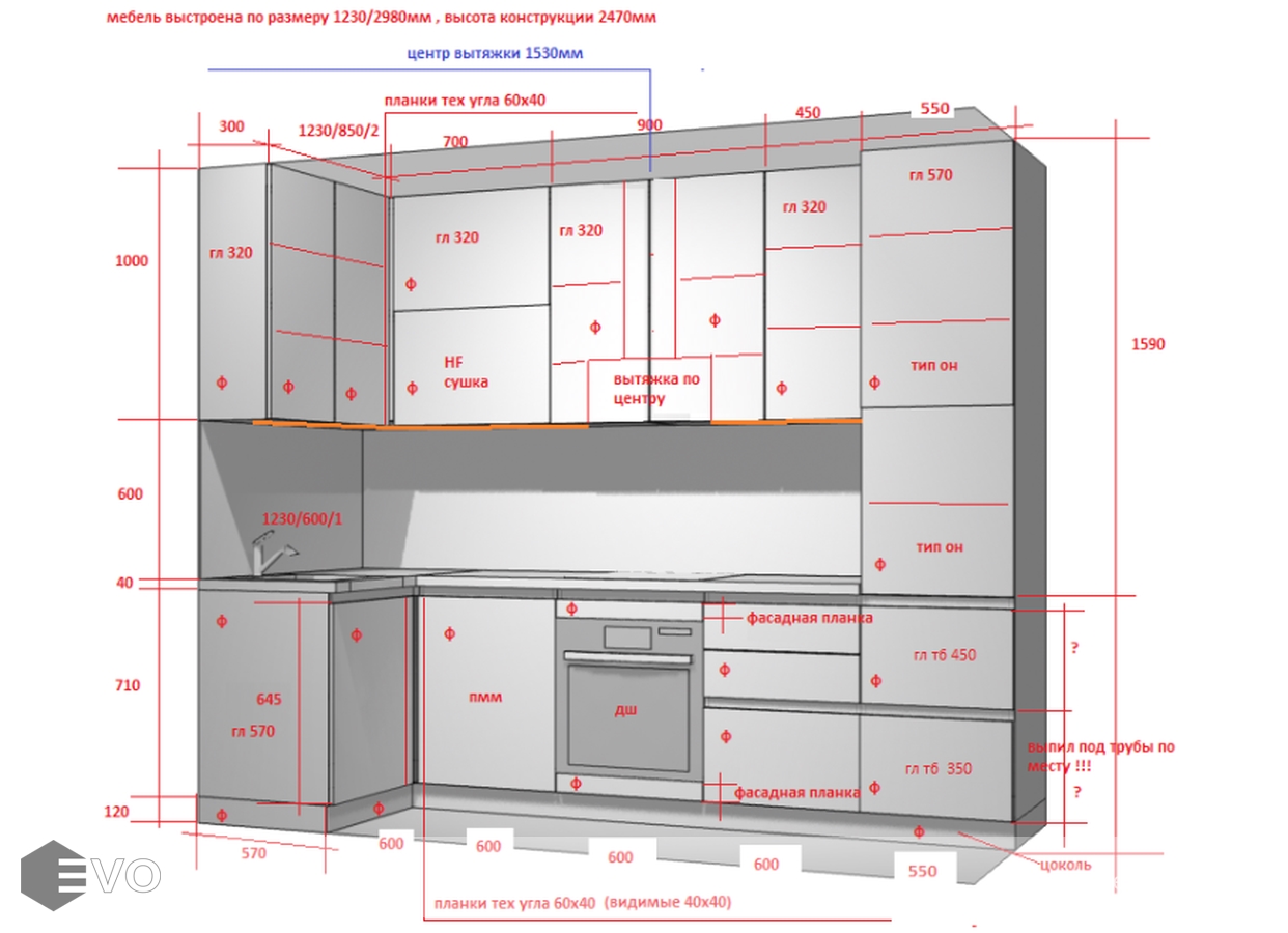 Кухни все изготавливаются по индивидуальному заказу. Мы подготовим дизайн-проект под любое помещение и конфигурацию. В зависимости от выбранных фасадов сможем изготовить нестандартные модули и размеры. Однако есть редкие исключения видов фасадов, по которым невозможны нестандарты, об этом вас предупредит дизайнер при выборе материалов для проекта.
