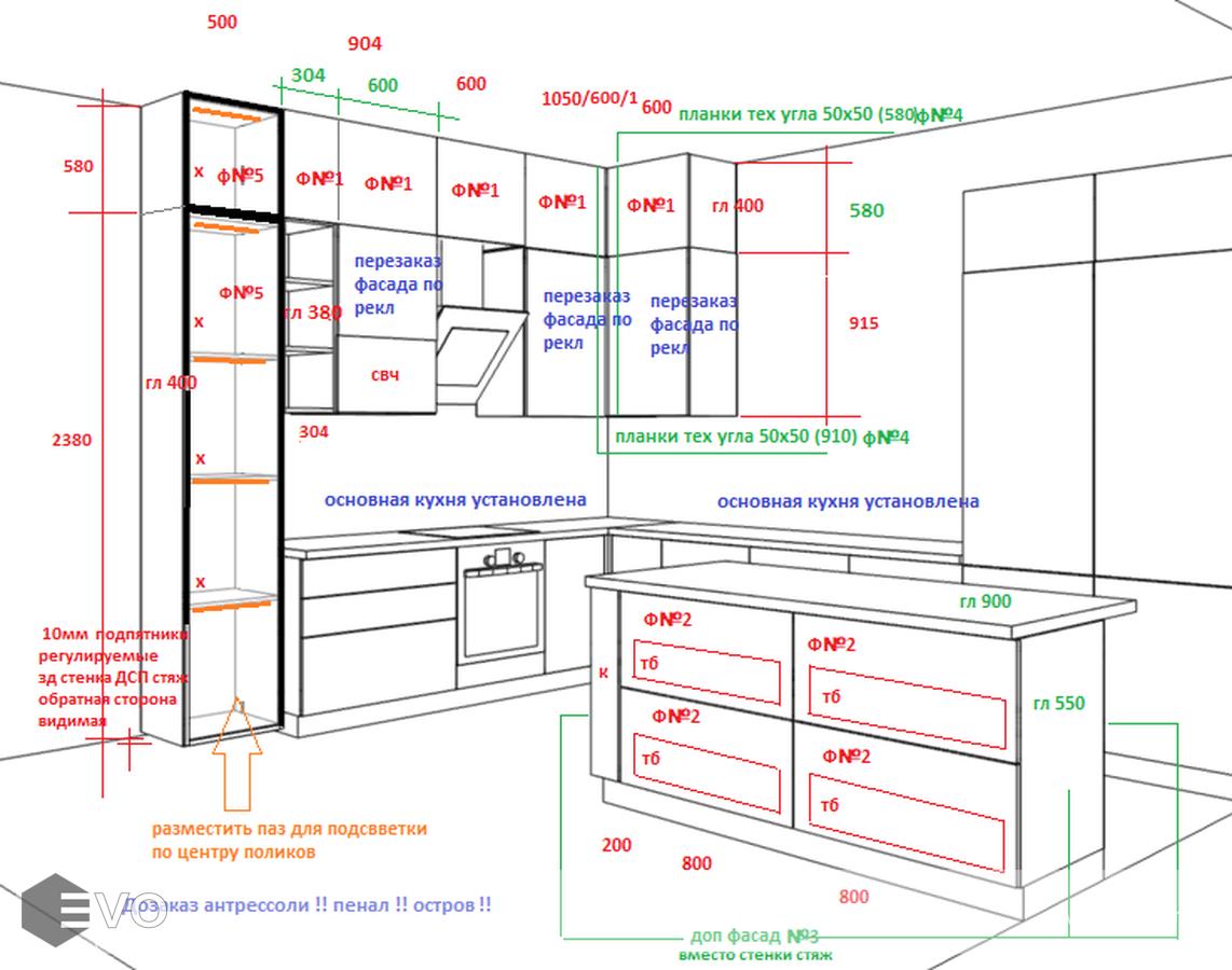 Кухни все изготавливаются по индивидуальному заказу. Мы подготовим дизайн-проект под любое помещение и конфигурацию. В зависимости от выбранных фасадов сможем изготовить нестандартные модули и размеры. Однако есть редкие исключения видов фасадов, по которым невозможны нестандарты, об этом вас предупредит дизайнер при выборе материалов для проекта.