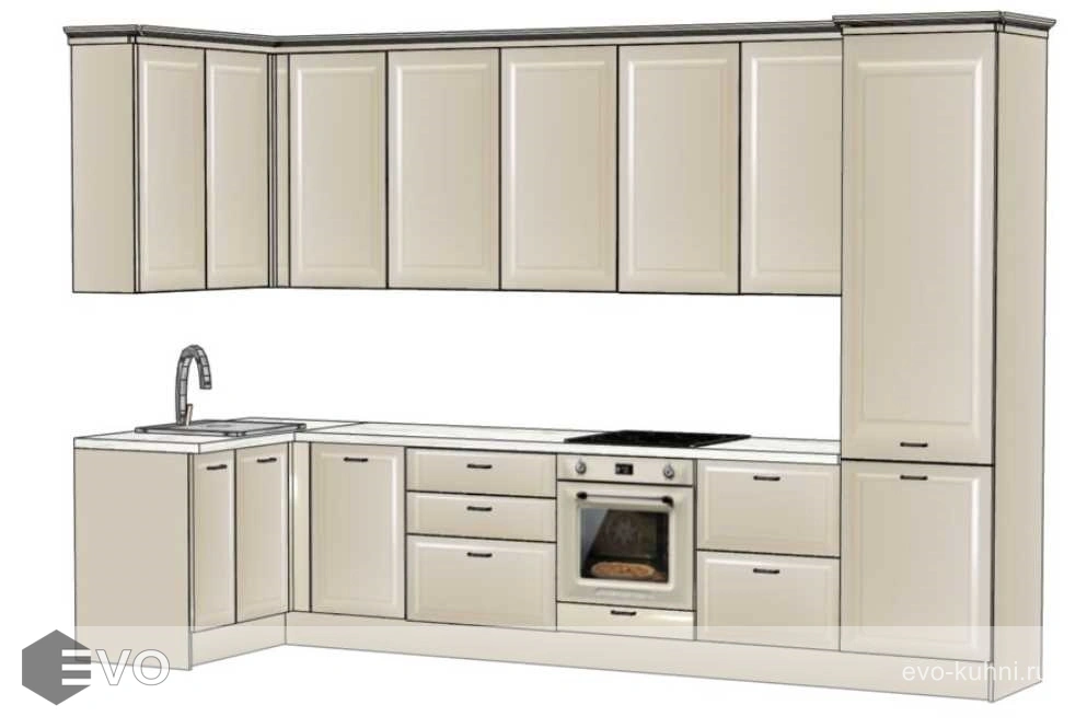 Кухни все изготавливаются по индивидуальному заказу. Мы подготовим дизайн-проект под любое помещение и конфигурацию. В зависимости от выбранных фасадов сможем изготовить нестандартные модули и размеры. Однако есть редкие исключения видов фасадов, по которым невозможны нестандарты, об этом вас предупредит дизайнер при выборе материалов для проекта.