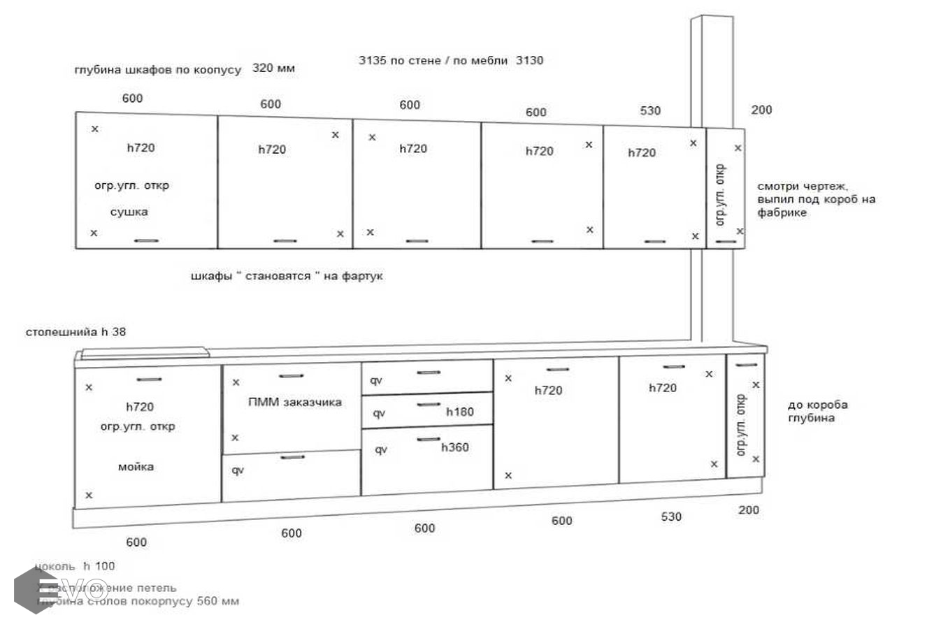 Кухни все изготавливаются по индивидуальному заказу. Мы подготовим дизайн-проект под любое помещение и конфигурацию. В зависимости от выбранных фасадов сможем изготовить нестандартные модули и размеры. Однако есть редкие исключения видов фасадов, по которым невозможны нестандарты, об этом вас предупредит дизайнер при выборе материалов для проекта.