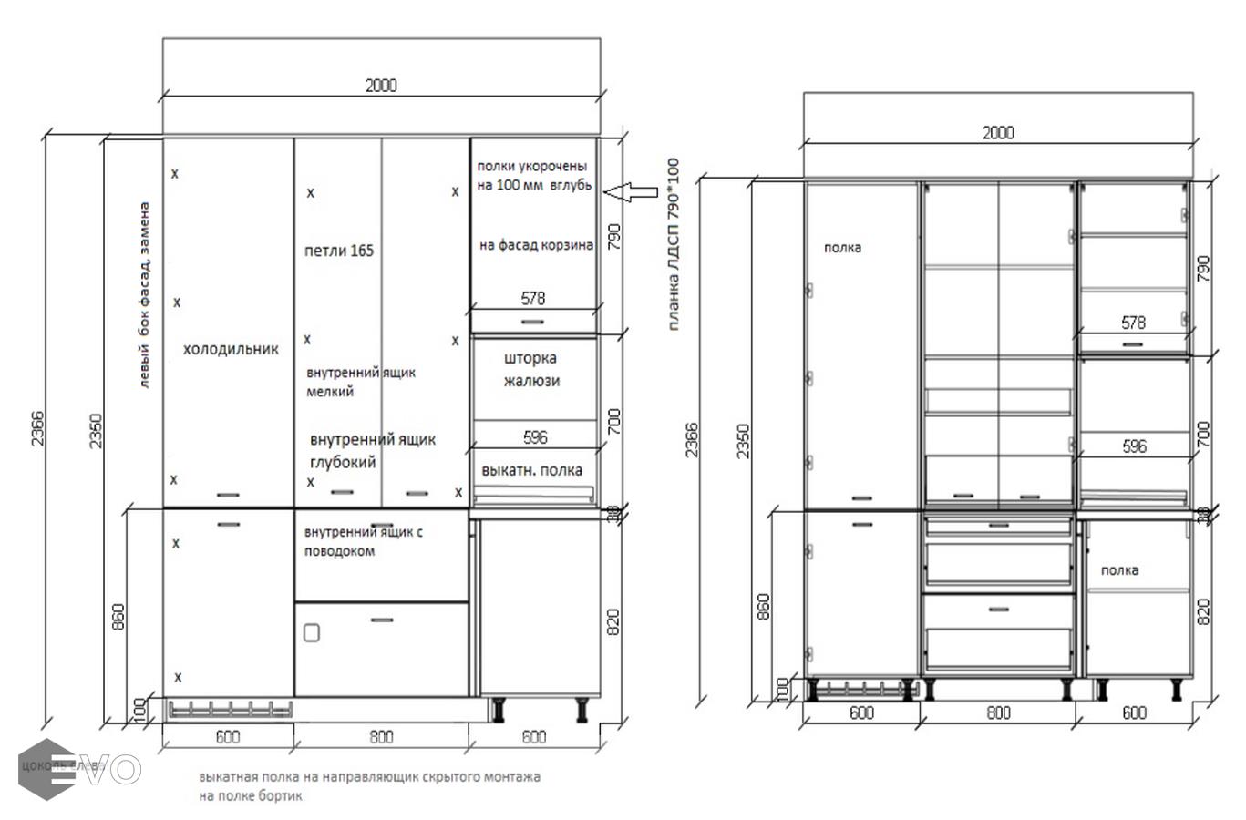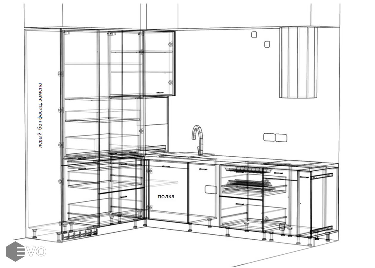 Кухни все изготавливаются по индивидуальному заказу. Мы подготовим дизайн-проект под любое помещение и конфигурацию. В зависимости от выбранных фасадов сможем изготовить нестандартные модули и размеры. Однако есть редкие исключения видов фасадов, по которым невозможны нестандарты, об этом вас предупредит дизайнер при выборе материалов для проекта.