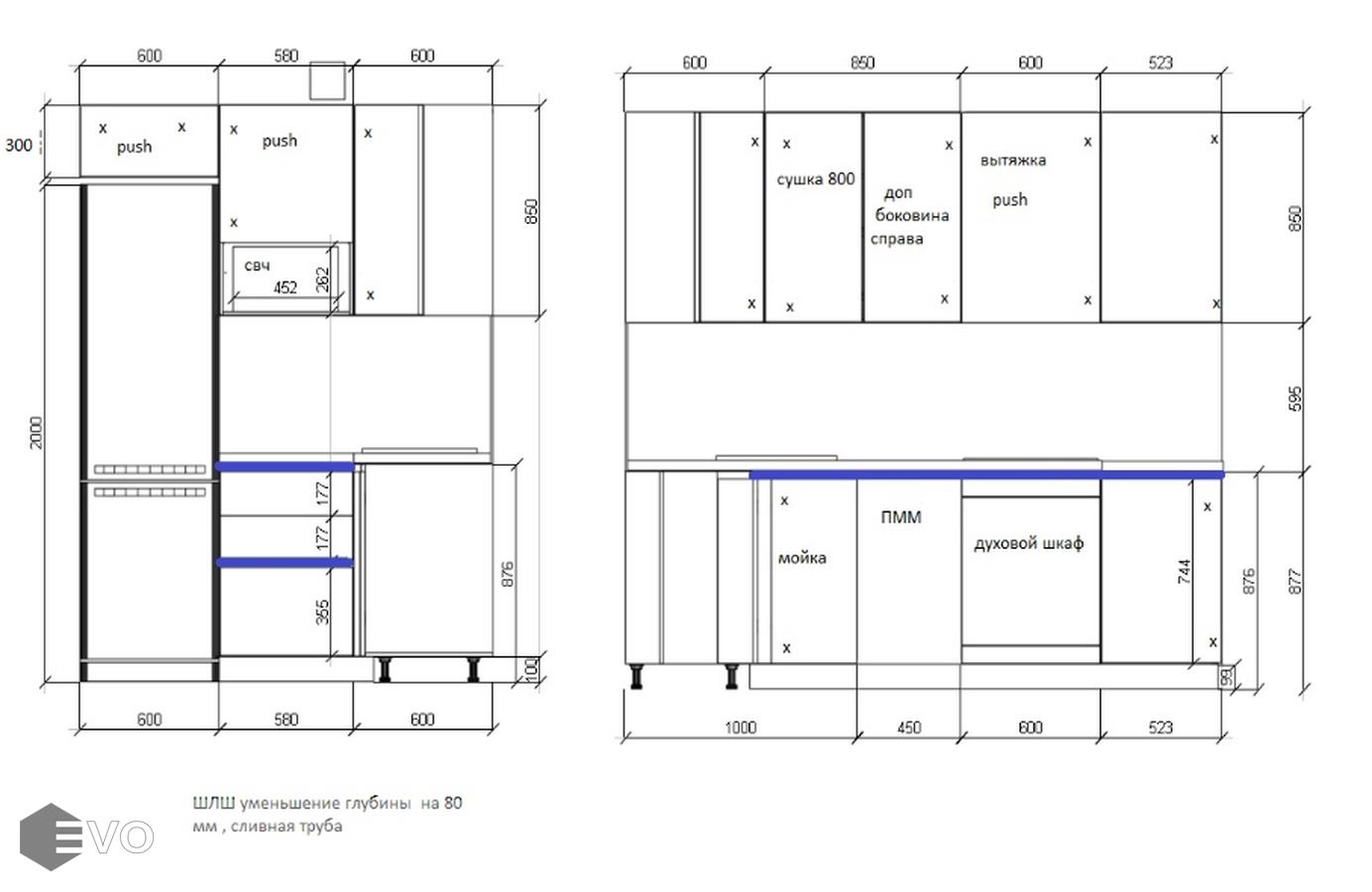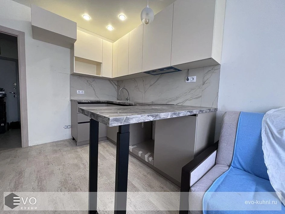 Кухни все изготавливаются по индивидуальному заказу. Мы подготовим дизайн-проект под любое помещение и конфигурацию. В зависимости от выбранных фасадов сможем изготовить нестандартные модули и размеры. Однако есть редкие исключения видов фасадов, по которым невозможны нестандарты, об этом вас предупредит дизайнер при выборе материалов для проекта.