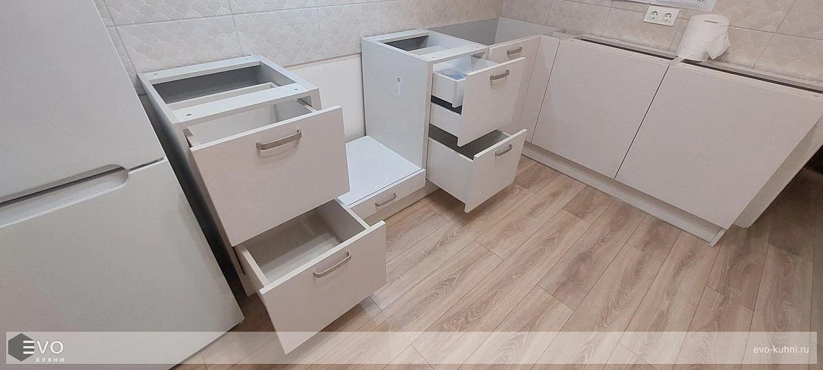 Кухни все изготавливаются по индивидуальному заказу. Мы подготовим дизайн-проект под любое помещение и конфигурацию. В зависимости от выбранных фасадов сможем изготовить нестандартные модули и размеры. Однако есть редкие исключения видов фасадов, по которым невозможны нестандарты, об этом вас предупредит дизайнер при выборе материалов для проекта.