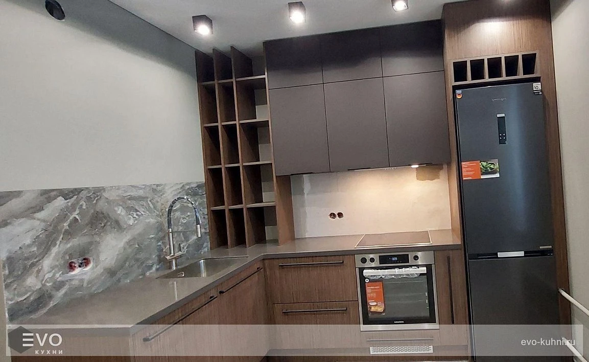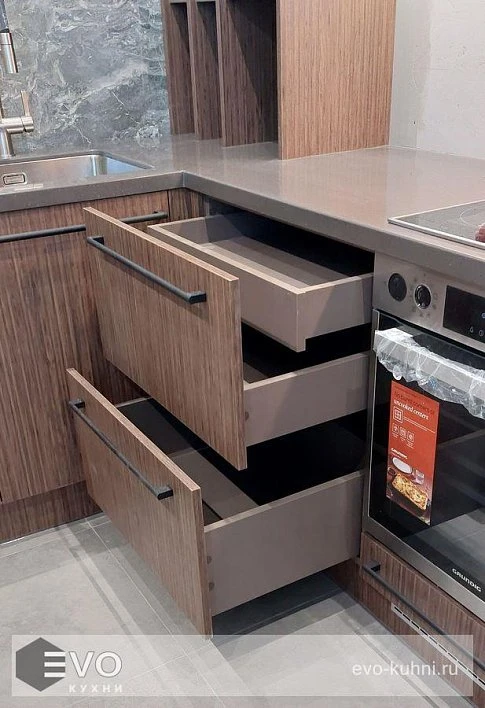 Кухни все изготавливаются по индивидуальному заказу. Мы подготовим дизайн-проект под любое помещение и конфигурацию. В зависимости от выбранных фасадов сможем изготовить нестандартные модули и размеры. Однако есть редкие исключения видов фасадов, по которым невозможны нестандарты, об этом вас предупредит дизайнер при выборе материалов для проекта.