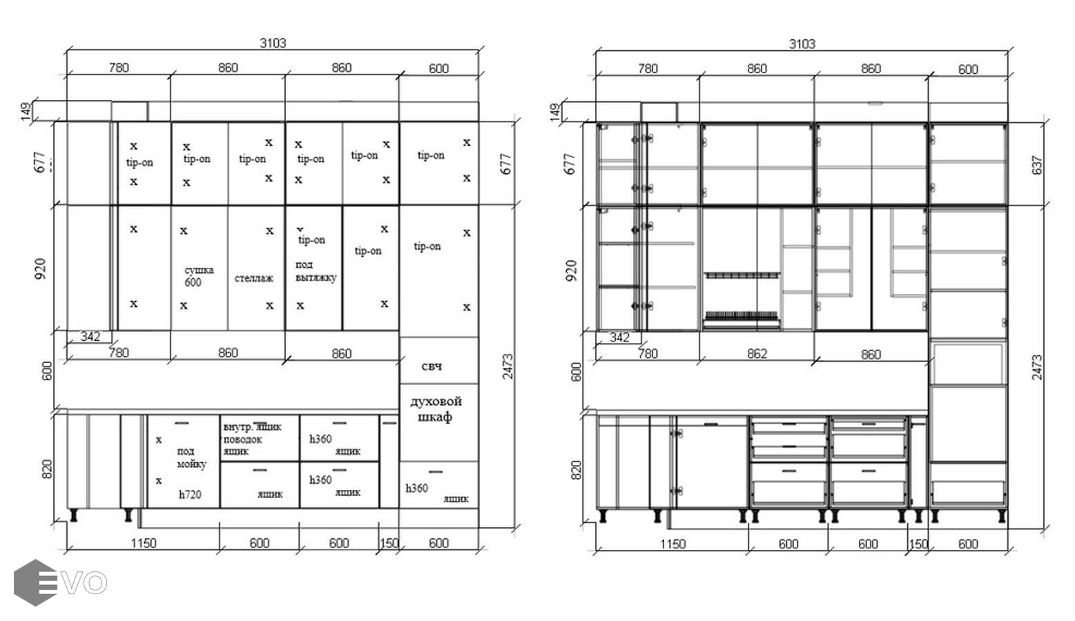 Дизайнеры помогают составить дизайн проект относительно пожеланий клиента после чего делают предварительный расчет т.к стоимость зависит от конфигурации, наполнения кухни, от выбранного материала, цветового исполнения и особенностей проектирования.