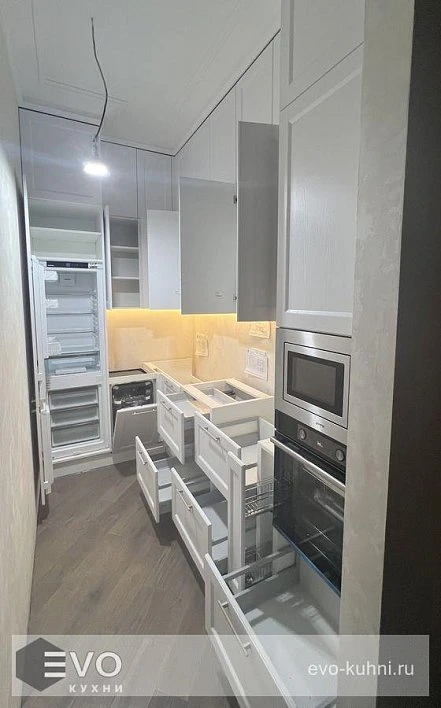 Кухни все изготавливаются по индивидуальному заказу. Мы подготовим дизайн-проект под любое помещение и конфигурацию. В зависимости от выбранных фасадов сможем изготовить нестандартные модули и размеры. Однако есть редкие исключения видов фасадов, по которым невозможны нестандарты, об этом вас предупредит дизайнер при выборе материалов для проекта.