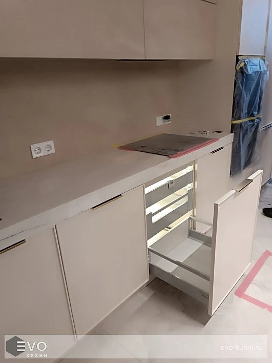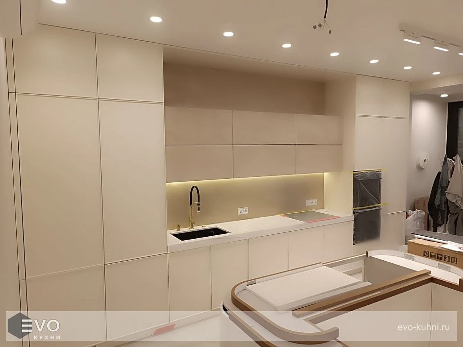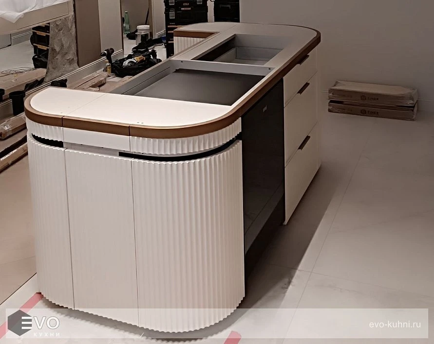 Кухни все изготавливаются по индивидуальному заказу. Мы подготовим дизайн-проект под любое помещение и конфигурацию. В зависимости от выбранных фасадов сможем изготовить нестандартные модули и размеры. Однако есть редкие исключения видов фасадов, по которым невозможны нестандарты, об этом вас предупредит дизайнер при выборе материалов для проекта.