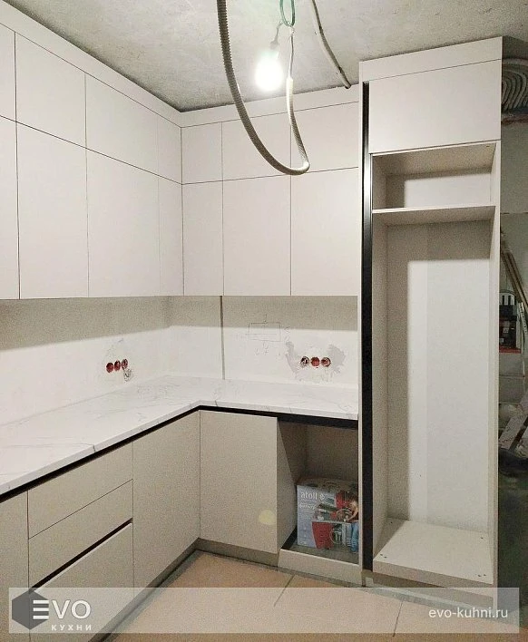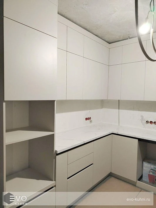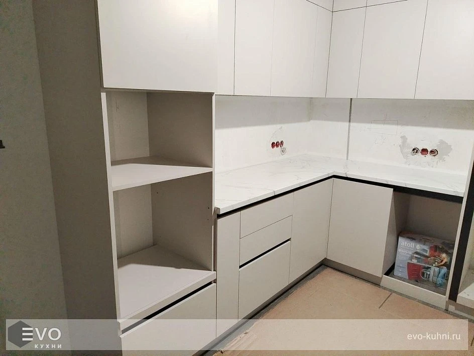 Кухни все изготавливаются по индивидуальному заказу. Мы подготовим дизайн-проект под любое помещение и конфигурацию. В зависимости от выбранных фасадов сможем изготовить нестандартные модули и размеры. Однако есть редкие исключения видов фасадов, по которым невозможны нестандарты, об этом вас предупредит дизайнер при выборе материалов для проекта.