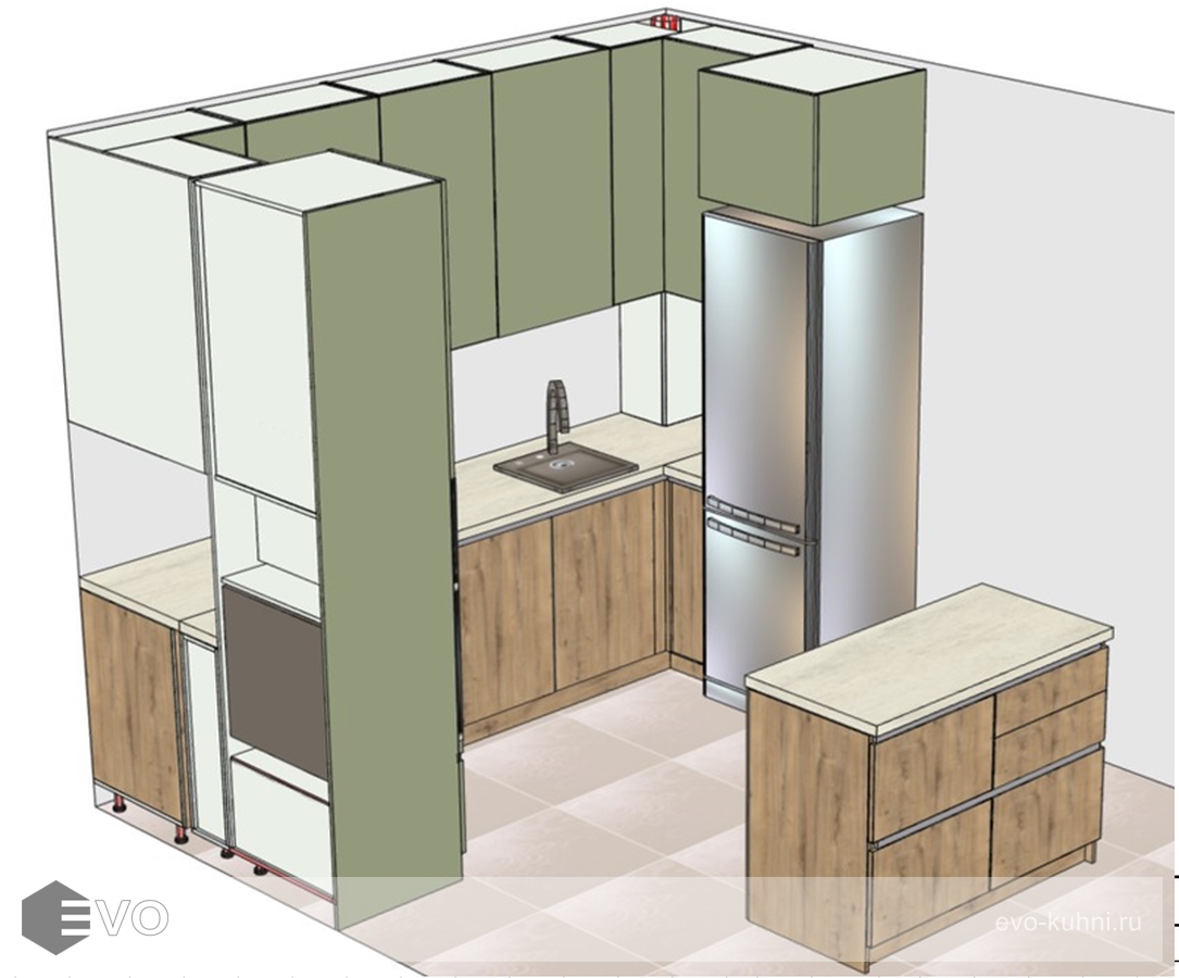 Кухни все изготавливаются по индивидуальному заказу. Мы подготовим дизайн-проект под любое помещение и конфигурацию. В зависимости от выбранных фасадов сможем изготовить нестандартные модули и размеры. Однако есть редкие исключения видов фасадов, по которым невозможны нестандарты, об этом вас предупредит дизайнер при выборе материалов для проекта.