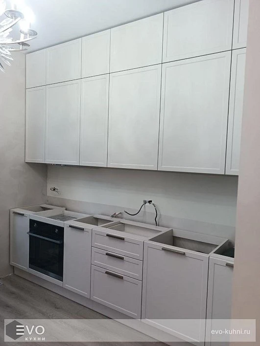 Кухни все изготавливаются по индивидуальному заказу. Мы подготовим дизайн-проект под любое помещение и конфигурацию. В зависимости от выбранных фасадов сможем изготовить нестандартные модули и размеры. Однако есть редкие исключения видов фасадов, по которым невозможны нестандарты, об этом вас предупредит дизайнер при выборе материалов для проекта.