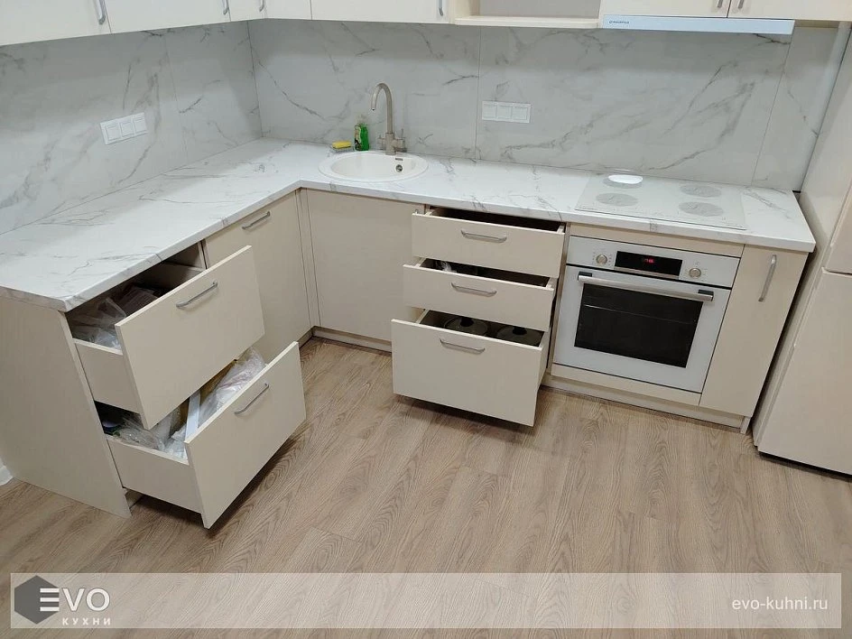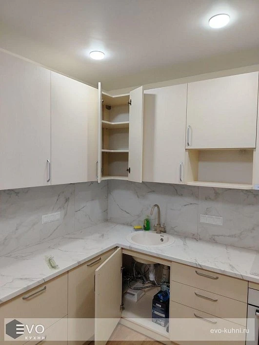 Кухни все изготавливаются по индивидуальному заказу. Мы подготовим дизайн-проект под любое помещение и конфигурацию. В зависимости от выбранных фасадов сможем изготовить нестандартные модули и размеры. Однако есть редкие исключения видов фасадов, по которым невозможны нестандарты, об этом вас предупредит дизайнер при выборе материалов для проекта.