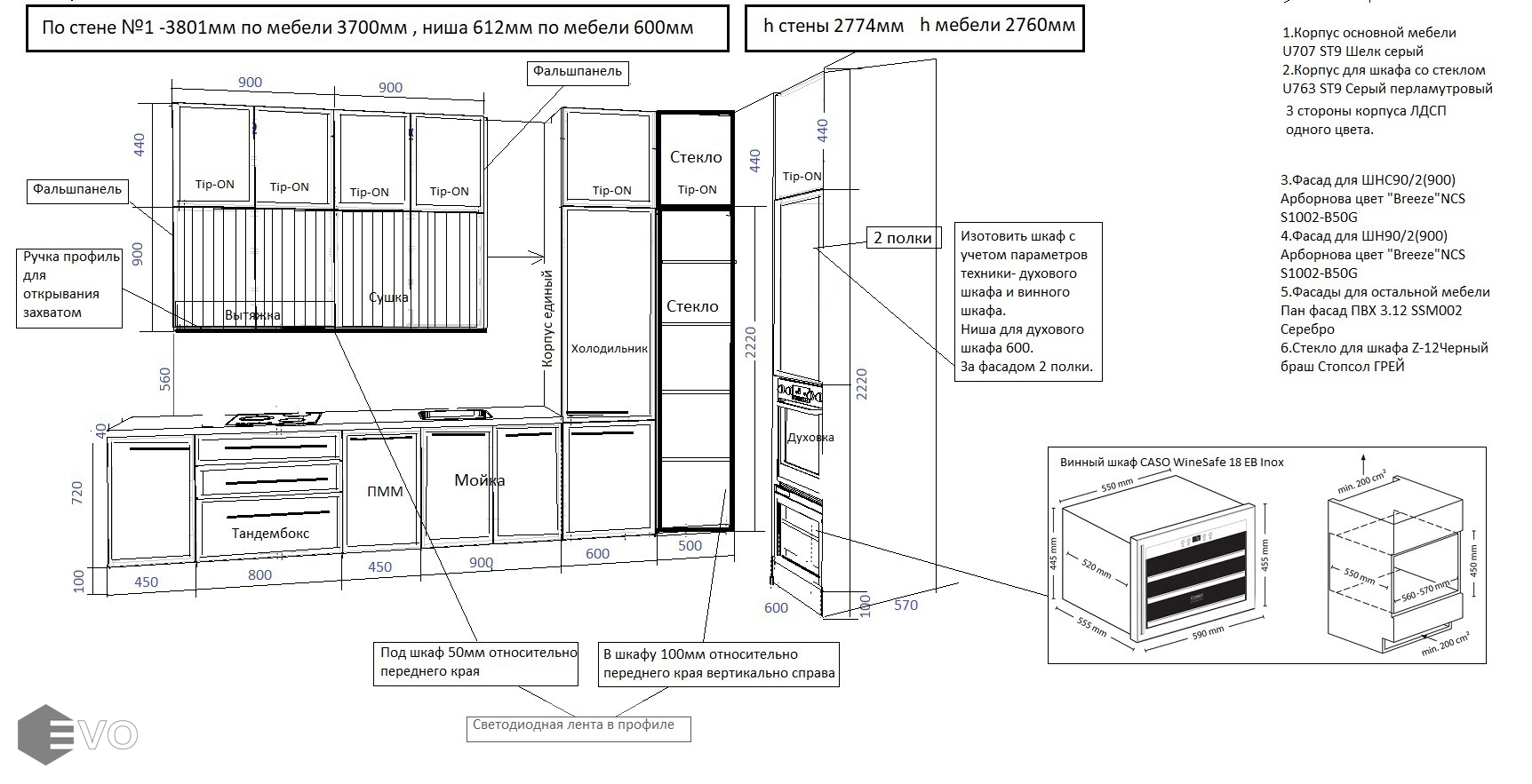 - Фасады: МДФ Пленка 3.12 SSM002 Серебро / МДФ Эмаль Breeze NCS S1002-B50G.