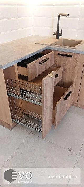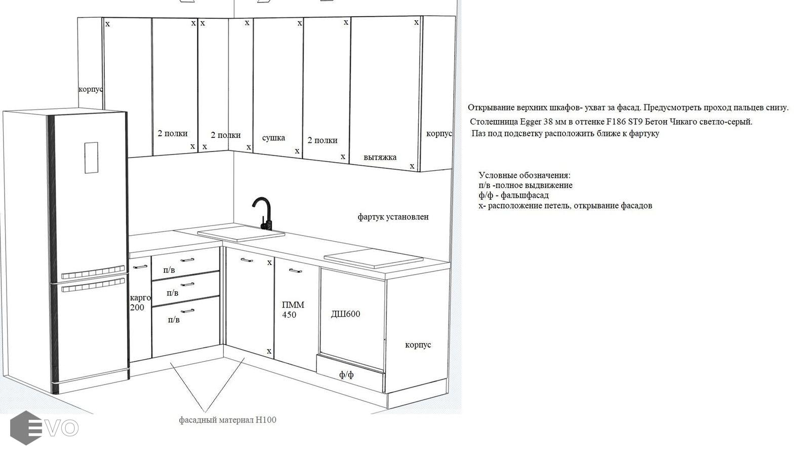 Кухни все изготавливаются по индивидуальному заказу. Мы подготовим дизайн-проект под любое помещение и конфигурацию. В зависимости от выбранных фасадов сможем изготовить нестандартные модули и размеры. Однако есть редкие исключения видов фасадов, по которым невозможны нестандарты, об этом вас предупредит дизайнер при выборе материалов для проекта.