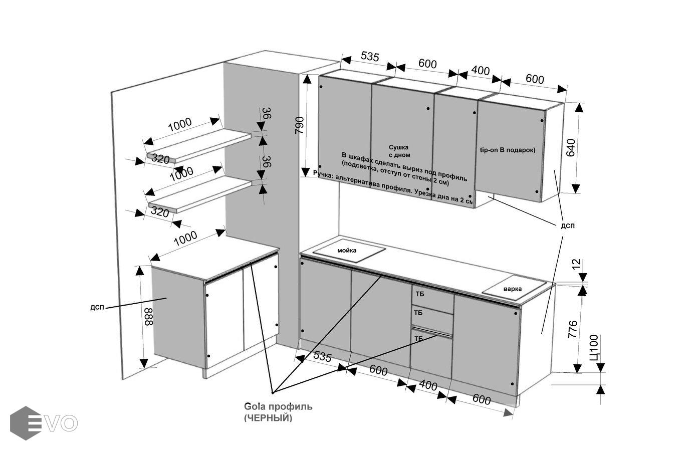 Кухни все изготавливаются по индивидуальному заказу. Мы подготовим дизайн-проект под любое помещение и конфигурацию. В зависимости от выбранных фасадов сможем изготовить нестандартные модули и размеры. Однако есть редкие исключения видов фасадов, по которым невозможны нестандарты, об этом вас предупредит дизайнер при выборе материалов для проекта.