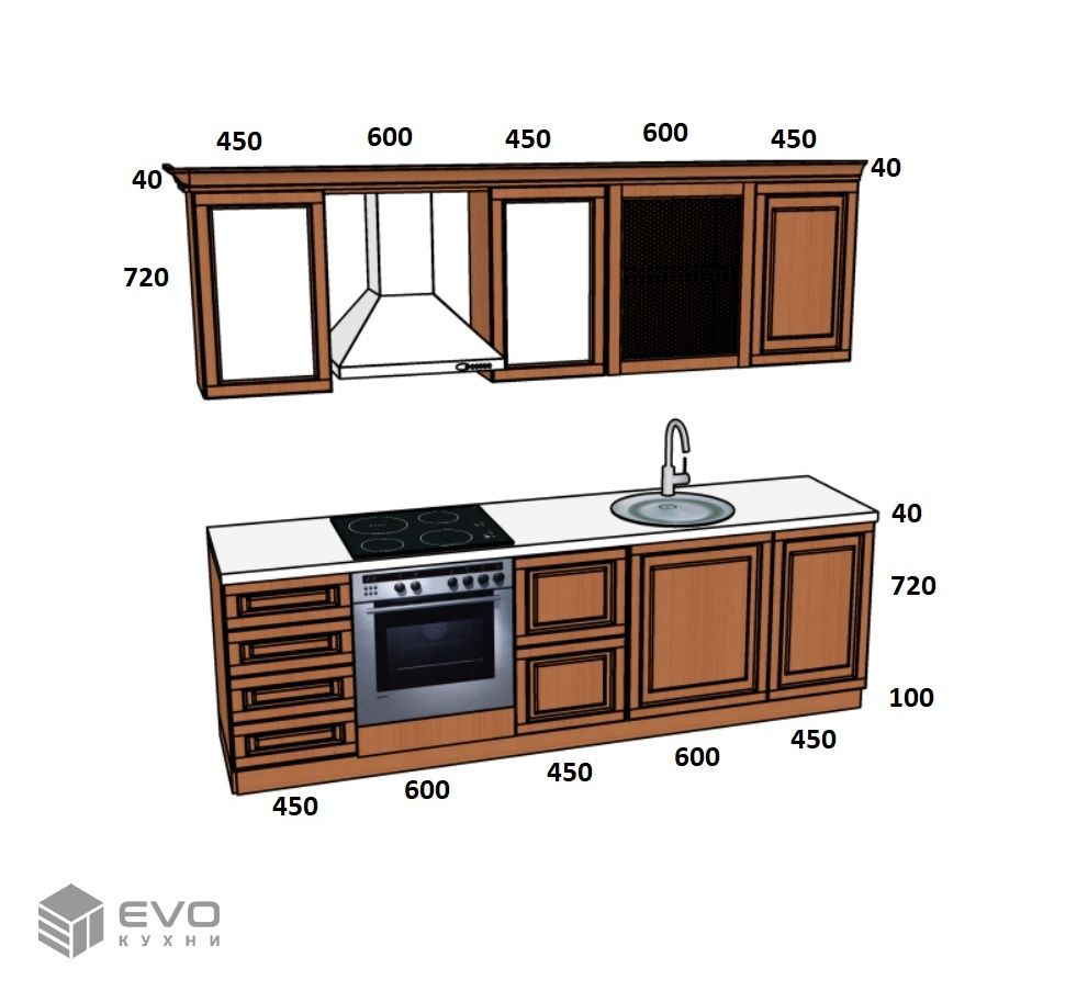 Кухни все изготавливаются по индивидуальному заказу. Мы подготовим дизайн-проект под любое помещение и конфигурацию. В зависимости от выбранных фасадов сможем изготовить нестандартные модули и размеры. Однако есть редкие исключения видов фасадов, по которым невозможны нестандарты, об этом вас предупредит дизайнер при выборе материалов для проекта.