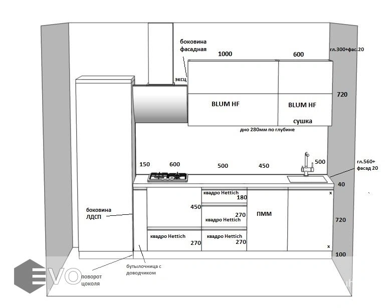Дизайн-проект, максимально удовлетворяющий вашим пожеланиям, мы делаем бесплатно. Наши менеджеры-дизайнеры помогут вам определиться с моделью вашей будущей кухни, грамотно подберут встраиваемую технику, подберут цветовую гамму самой кухни исходя из стилистики интерьера и пожеланий клиента, составят технически грамотный проект под размеры помещения.
