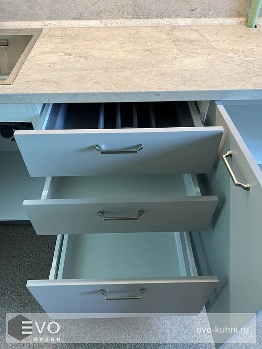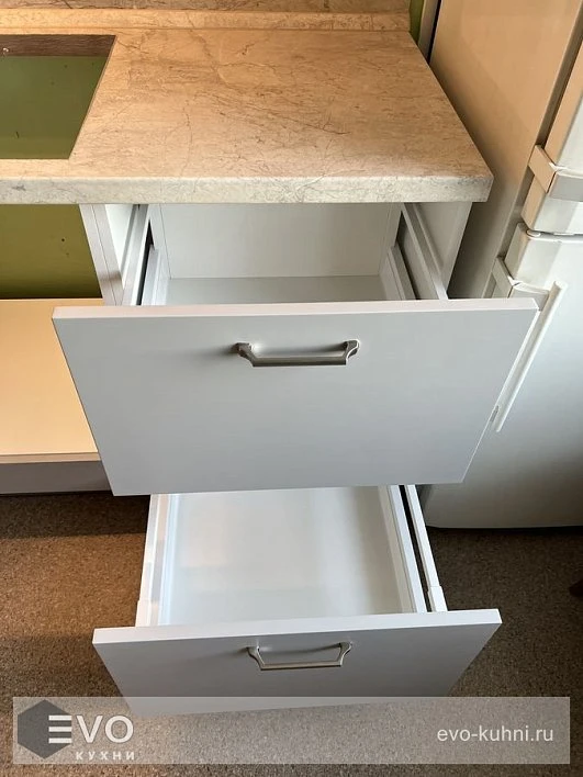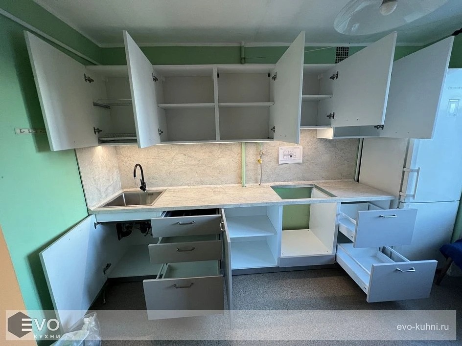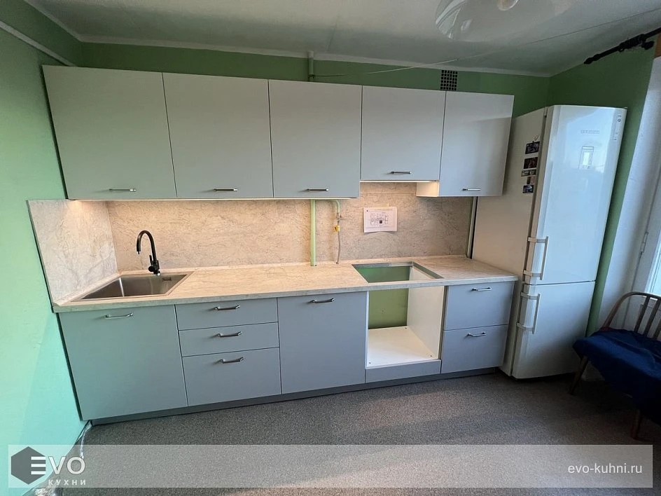 Кухни все изготавливаются по индивидуальному заказу. Мы подготовим дизайн-проект под любое помещение и конфигурацию. В зависимости от выбранных фасадов сможем изготовить нестандартные модули и размеры. Однако есть редкие исключения видов фасадов, по которым невозможны нестандарты, об этом вас предупредит дизайнер при выборе материалов для проекта.