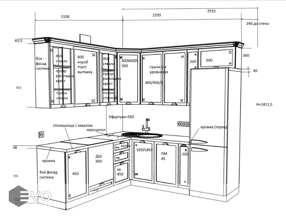 Дизайн-проект, максимально удовлетворяющий вашим пожеланиям, мы делаем бесплатно. Наши менеджеры-дизайнеры помогут вам определиться с моделью вашей будущей кухни, грамотно подберут встраиваемую технику, подберут цветовую гамму самой кухни исходя из стилистики интерьера и пожеланий клиента, составят технически грамотный проект под размеры помещения.
