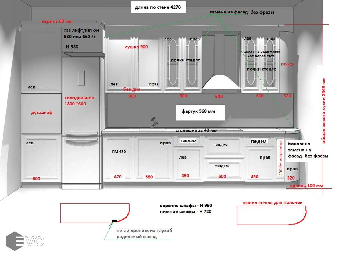 *в стоимость включено мебель, столешница искусственный камень, интегрированная мойка, сушка, ручки. Замер, доставка и сборка .