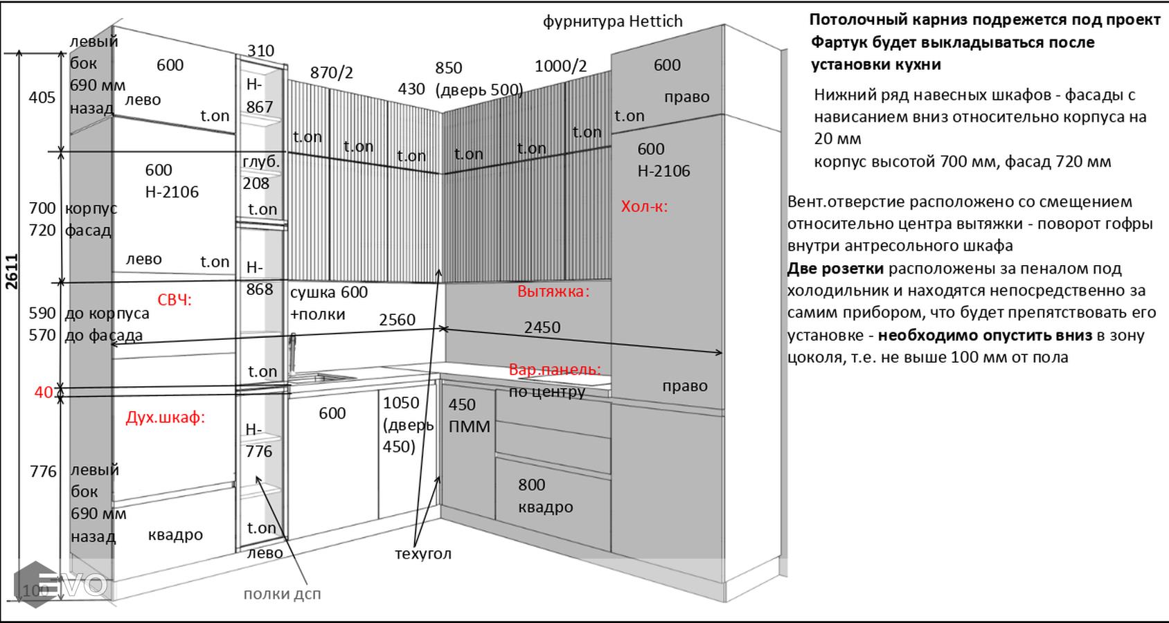 Дизайн-проект, максимально удовлетворяющий вашим пожеланиям, мы делаем бесплатно. Наши менеджеры-дизайнеры помогут вам определиться с моделью вашей будущей кухни, грамотно подберут встраиваемую технику, подберут цветовую гамму самой кухни исходя из стилистики интерьера и пожеланий клиента, составят технически грамотный проект под размеры помещения.
