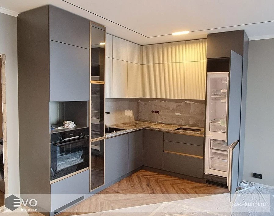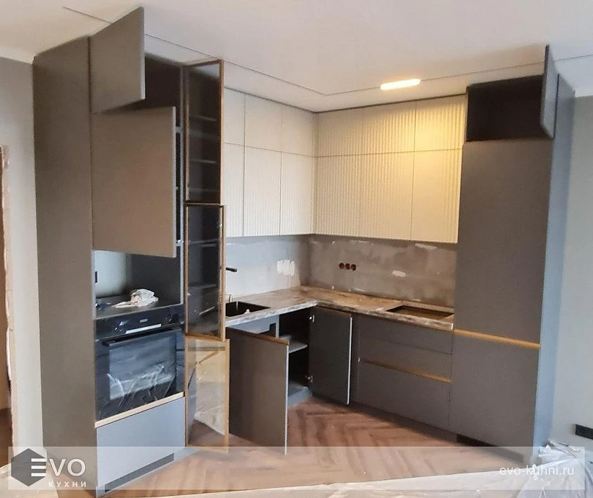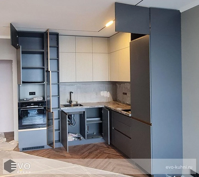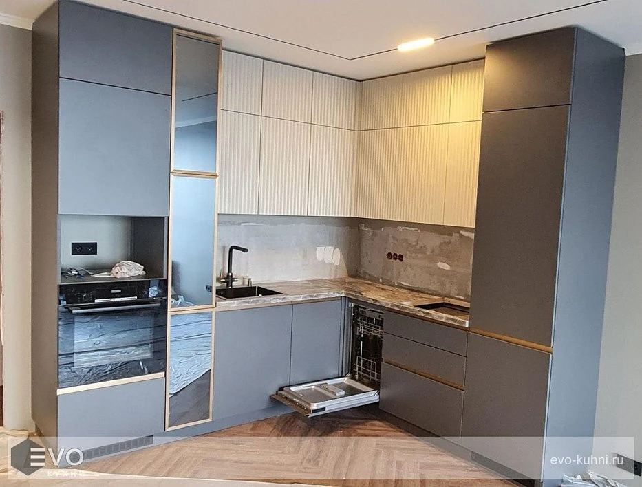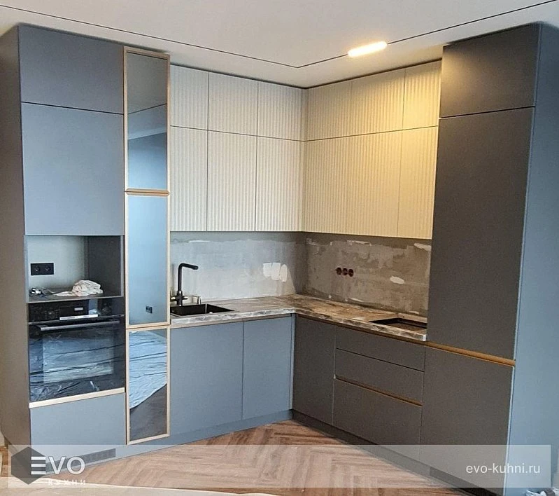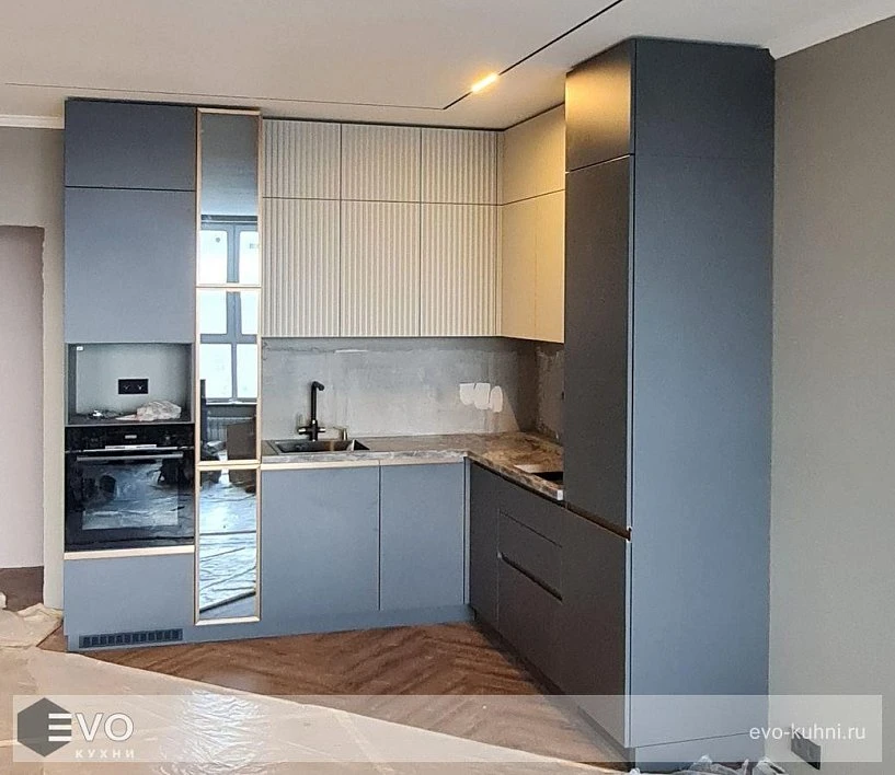 Кухни все изготавливаются по индивидуальному заказу. Мы подготовим дизайн-проект под любое помещение и конфигурацию. В зависимости от выбранных фасадов сможем изготовить нестандартные модули и размеры. Однако есть редкие исключения видов фасадов, по которым невозможны нестандарты, об этом вас предупредит дизайнер при выборе материалов для проекта.