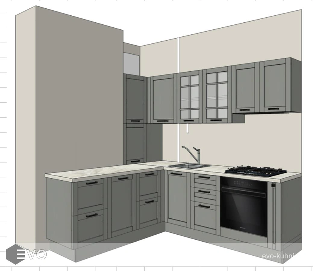 Кухни все изготавливаются по индивидуальному заказу. Мы подготовим дизайн-проект под любое помещение и конфигурацию. В зависимости от выбранных фасадов сможем изготовить нестандартные модули и размеры. Однако есть редкие исключения видов фасадов, по которым невозможны нестандарты, об этом вас предупредит дизайнер при выборе материалов для проекта.