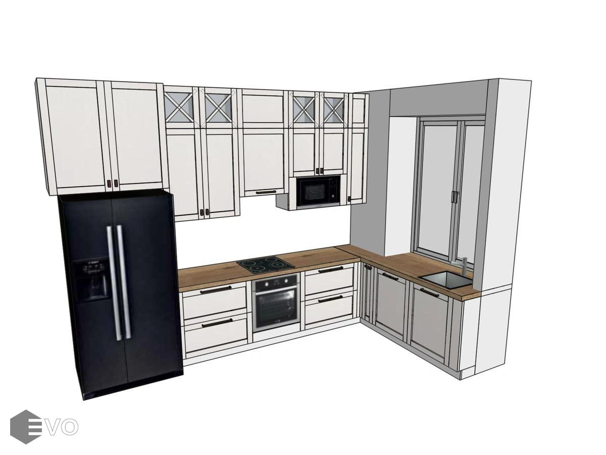 Кухни все изготавливаются по индивидуальному заказу. Мы подготовим дизайн-проект под любое помещение и конфигурацию. В зависимости от выбранных фасадов сможем изготовить нестандартные модули и размеры. Однако есть редкие исключения видов фасадов, по которым невозможны нестандарты, об этом вас предупредит дизайнер при выборе материалов для проекта.