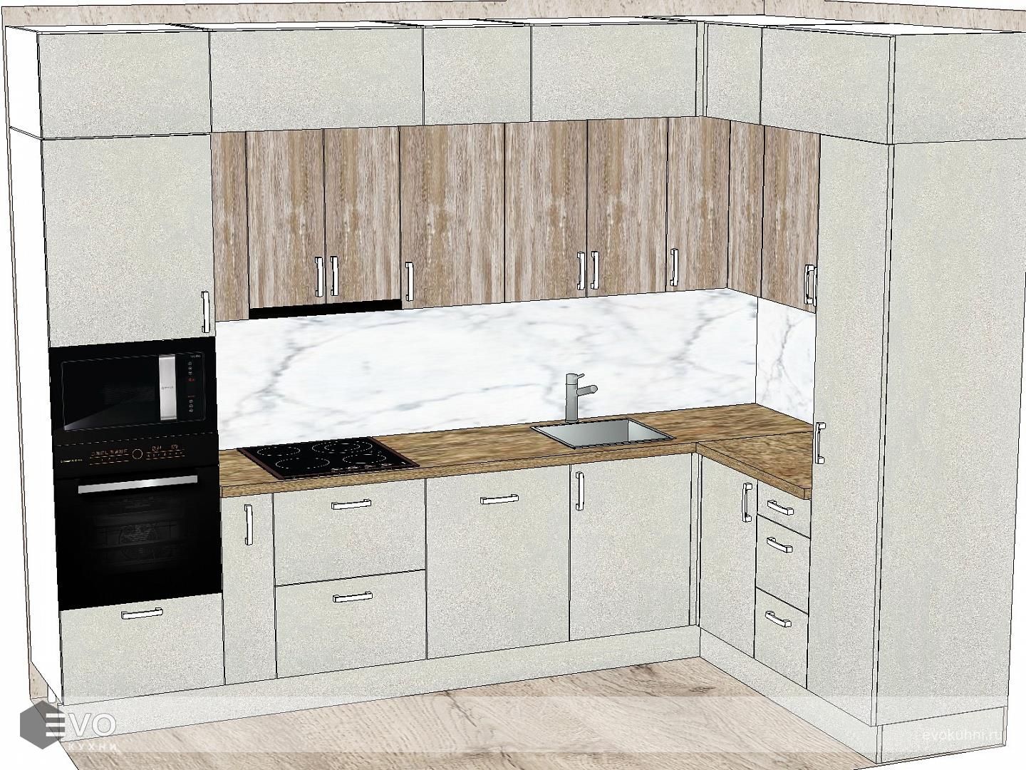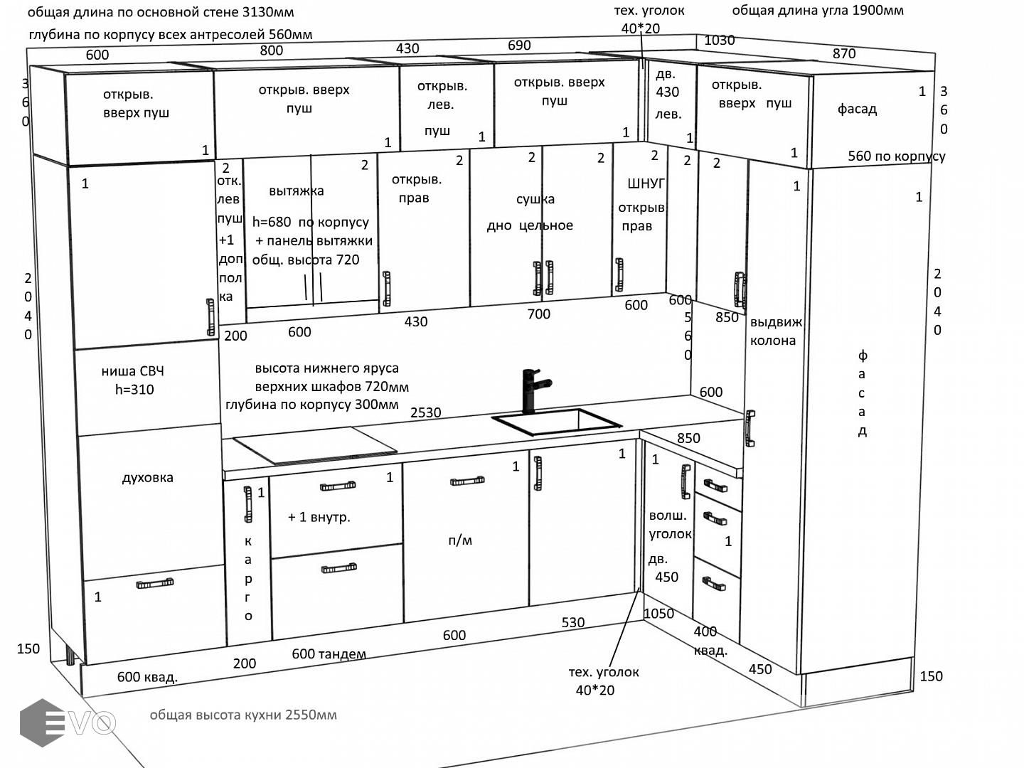 Кухни все изготавливаются по индивидуальному заказу. Мы подготовим дизайн-проект под любое помещение и конфигурацию. В зависимости от выбранных фасадов сможем изготовить нестандартные модули и размеры. Однако есть редкие исключения видов фасадов, по которым невозможны нестандарты, об этом вас предупредит дизайнер при выборе материалов для проекта.