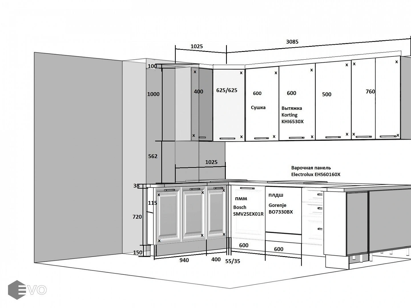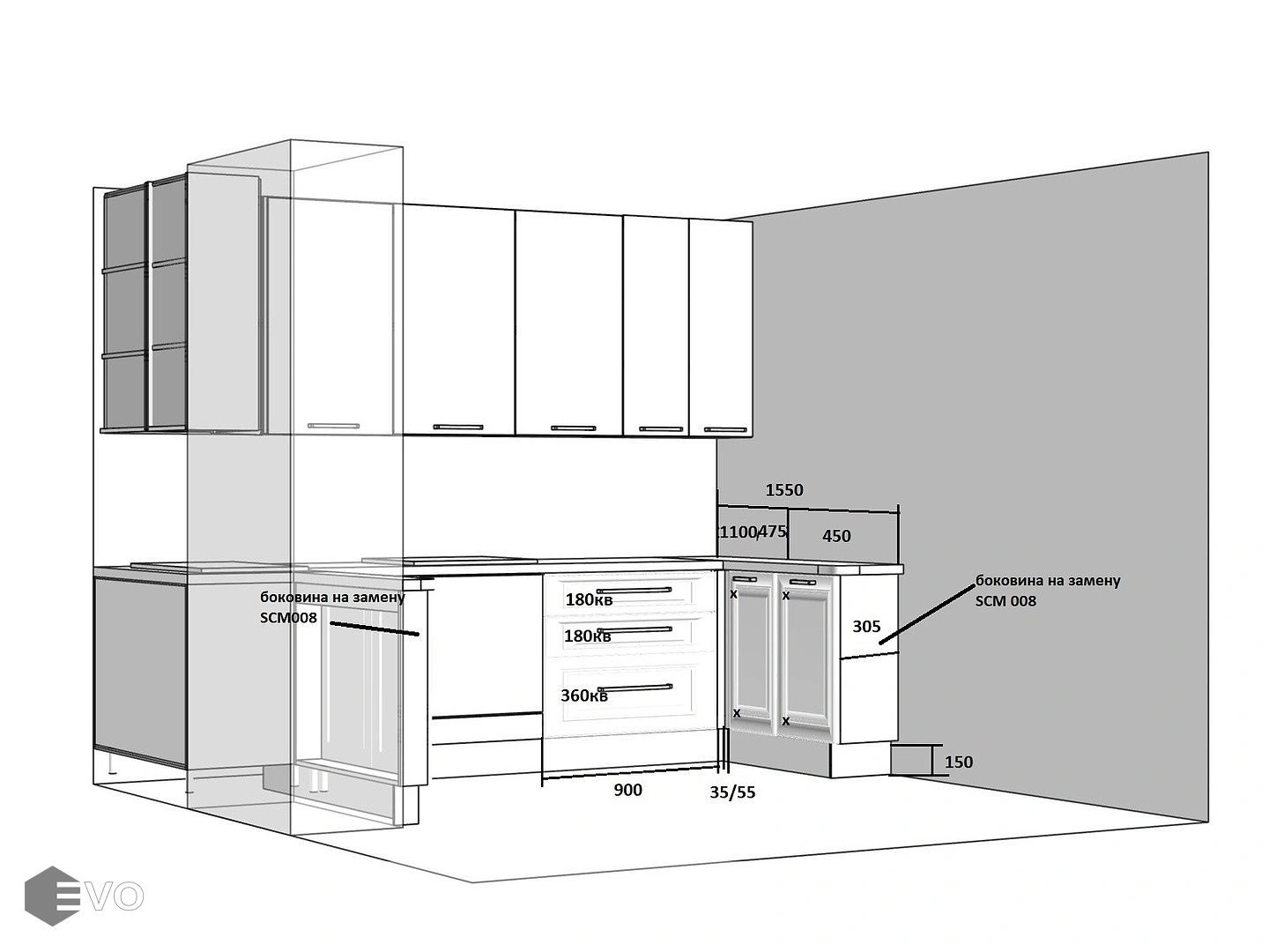 Кухни все изготавливаются по индивидуальному заказу. Мы подготовим дизайн-проект под любое помещение и конфигурацию. В зависимости от выбранных фасадов сможем изготовить нестандартные модули и размеры. Однако есть редкие исключения видов фасадов, по которым невозможны нестандарты, об этом вас предупредит дизайнер при выборе материалов для проекта.