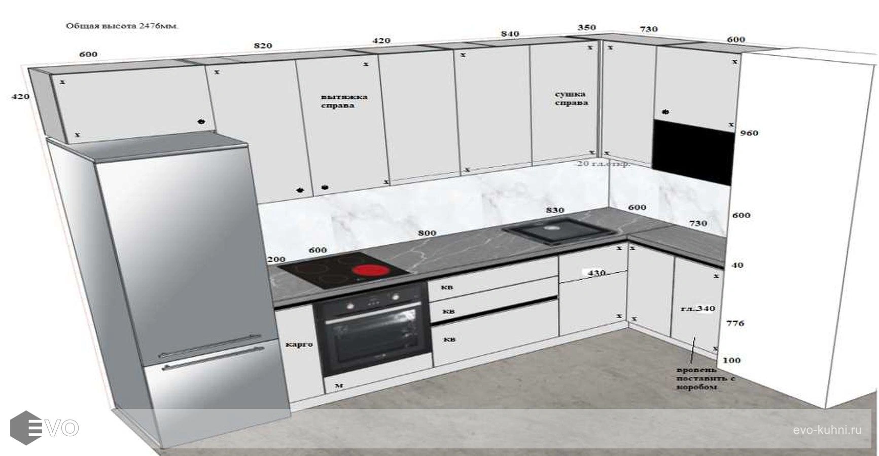 Кухни все изготавливаются по индивидуальному заказу. Мы подготовим дизайн-проект под любое помещение и конфигурацию. В зависимости от выбранных фасадов сможем изготовить нестандартные модули и размеры. Однако есть редкие исключения видов фасадов, по которым невозможны нестандарты, об этом вас предупредит дизайнер при выборе материалов для проекта.