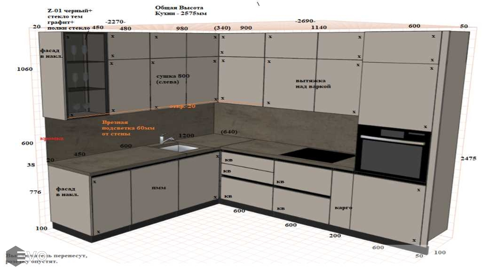Дизайн-проект, максимально удовлетворяющий вашим пожеланиям, мы делаем бесплатно. Наши менеджеры-дизайнеры помогут вам определиться с моделью вашей будущей кухни, грамотно подберут встраиваемую технику, подберут цветовую гамму самой кухни исходя из стилистики интерьера и пожеланий клиента, составят технически грамотный проект под размеры помещения.