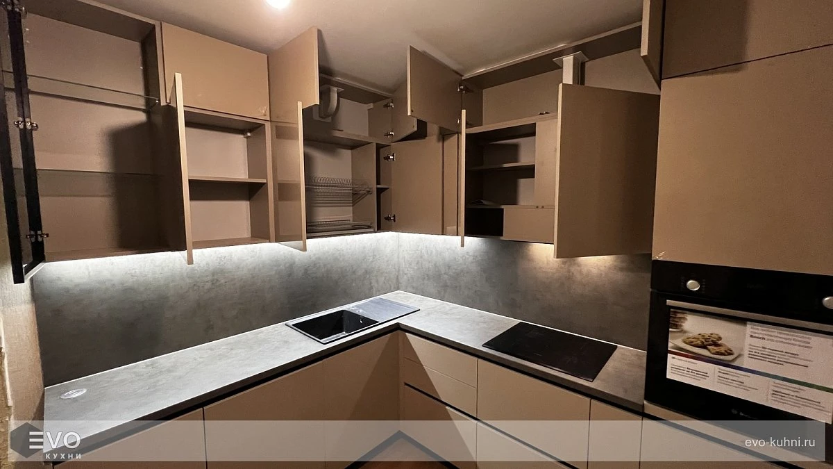 Кухни все изготавливаются по индивидуальному заказу. Мы подготовим дизайн-проект под любое помещение и конфигурацию. В зависимости от выбранных фасадов сможем изготовить нестандартные модули и размеры. Однако есть редкие исключения видов фасадов, по которым невозможны нестандарты, об этом вас предупредит дизайнер при выборе материалов для проекта.