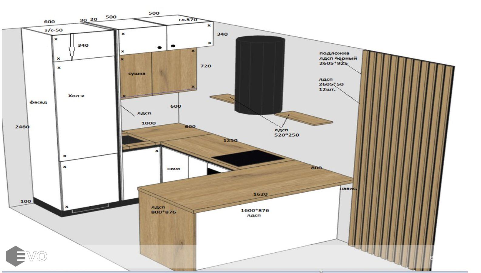 Дизайн-проект, максимально удовлетворяющий вашим пожеланиям, мы делаем бесплатно. Наши менеджеры-дизайнеры помогут вам определиться с моделью вашей будущей кухни, грамотно подберут встраиваемую технику, подберут цветовую гамму самой кухни исходя из стилистики интерьера и пожеланий клиента, составят технически грамотный проект под размеры помещения.