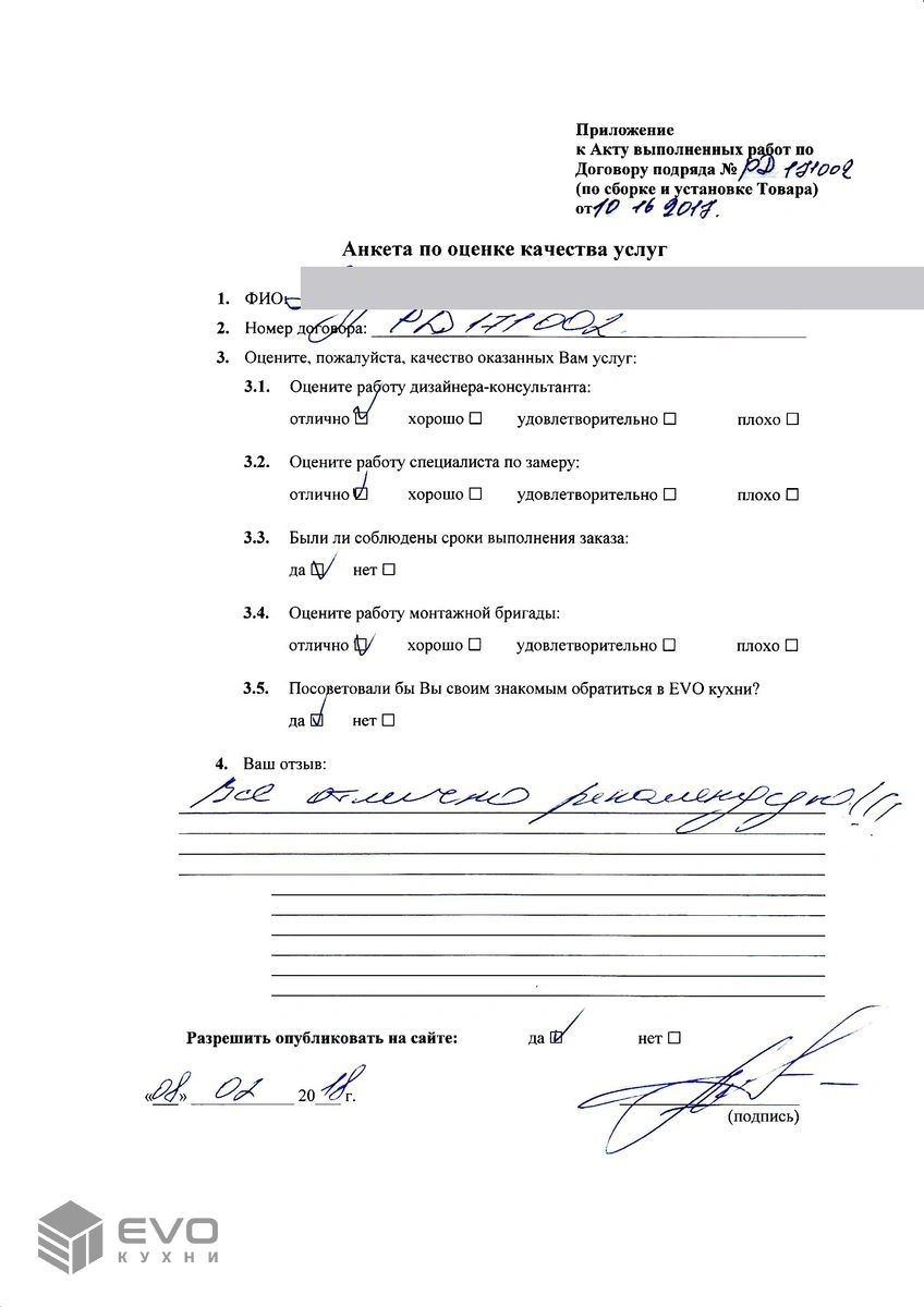 - Фартук: клиента.