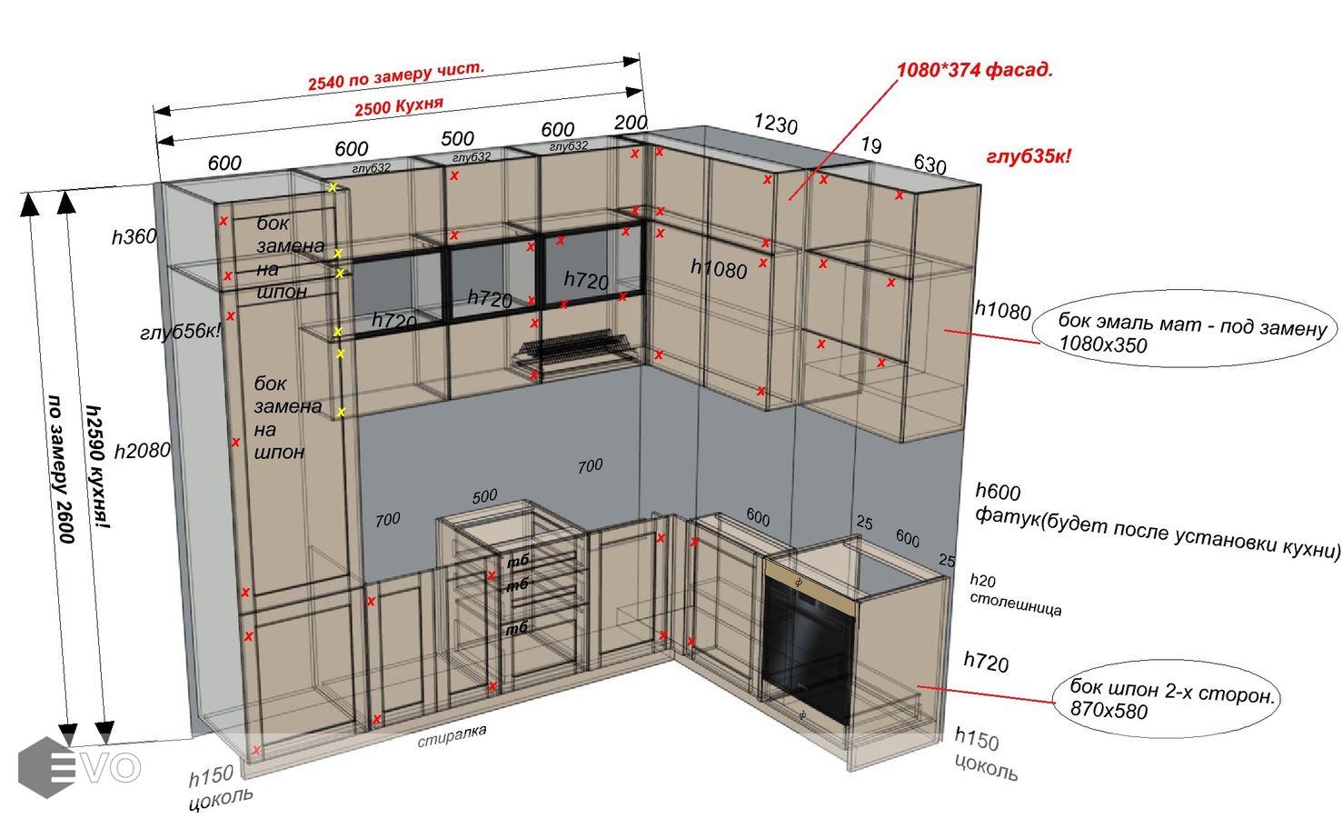 Кухни все изготавливаются по индивидуальному заказу. Мы подготовим дизайн-проект под любое помещение и конфигурацию. В зависимости от выбранных фасадов сможем изготовить нестандартные модули и размеры. Однако есть редкие исключения видов фасадов, по которым невозможны нестандарты, об этом вас предупредит дизайнер при выборе материалов для проекта.