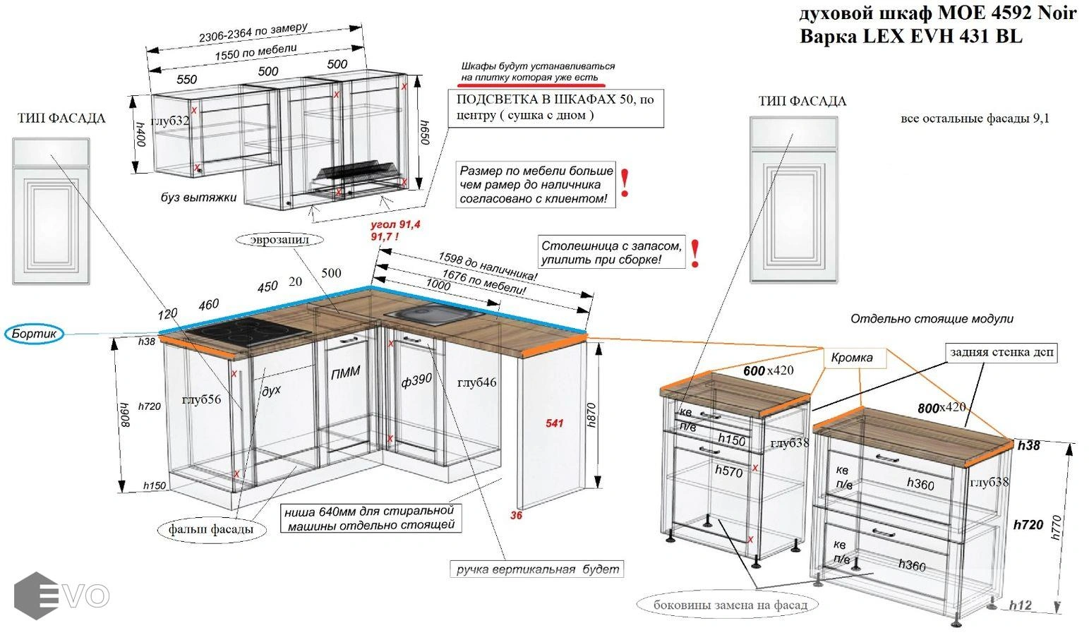 Кухни все изготавливаются по индивидуальному заказу. Мы подготовим дизайн-проект под любое помещение и конфигурацию. В зависимости от выбранных фасадов сможем изготовить нестандартные модули и размеры. Однако есть редкие исключения видов фасадов, по которым невозможны нестандарты, об этом вас предупредит дизайнер при выборе материалов для проекта.