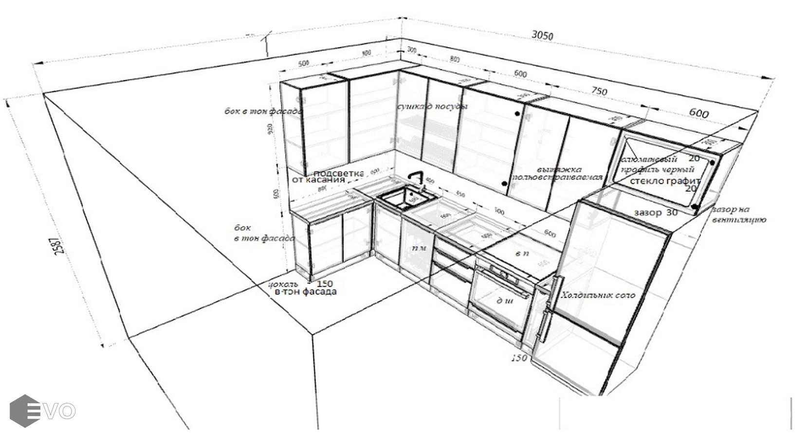 Кухни все изготавливаются по индивидуальному заказу. Мы подготовим дизайн-проект под любое помещение и конфигурацию. В зависимости от выбранных фасадов сможем изготовить нестандартные модули и размеры. Однако есть редкие исключения видов фасадов, по которым невозможны нестандарты, об этом вас предупредит дизайнер при выборе материалов для проекта.
