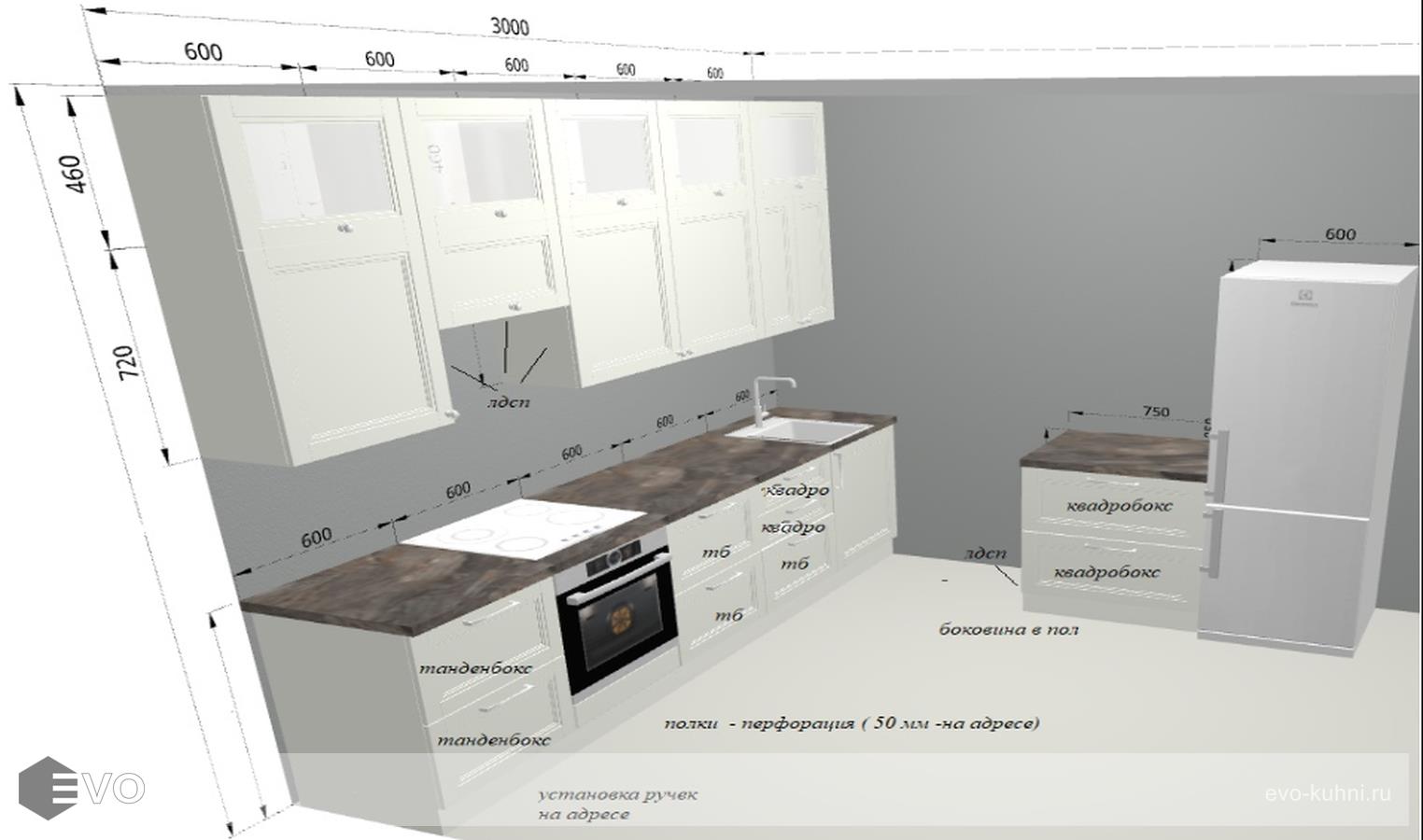 Дизайн-проект, максимально удовлетворяющий вашим пожеланиям, мы делаем бесплатно. Наши менеджеры-дизайнеры помогут вам определиться с моделью вашей будущей кухни, грамотно подберут встраиваемую технику, подберут цветовую гамму самой кухни исходя из стилистики интерьера и пожеланий клиента, составят технически грамотный проект под размеры помещения.